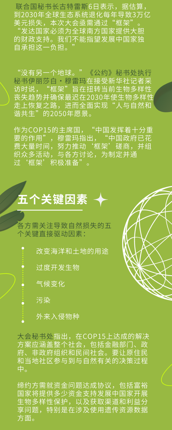 中方敦促各方凝聚共识,通过“2020年后全球生物多样性框架”,为全球生物多样性保护描绘新蓝图。