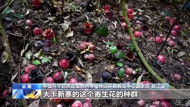 中国科学院西双版纳热带植物园环境教育中心副主任 赵江波:它是在这种崖爬藤属的植物根部寄生,所有养分都是来自寄主。(但是)有很多地方都有这个崖爬藤属的植物,(却)不一定有寄生花。因为寄生花它的这个寄生机制,对科学界来说还是一个未解之谜。