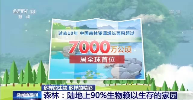 我国一贯高度重视森林生态的保护和修复。通过推进山水林田湖草沙一体化保护修复,中国的森林覆盖率和森林蓄积量连续30年保持“双增长”。过去10年,中国森林资源增长面积超过7000万公顷,居全球首位。生物遗传资源的收集保藏量位居世界前列。各类自然保护地总数量超过1万处,约占国土面积的18%。超过90%的陆地自然生态系统类型和71%的国家重点保护野生动植物种类得到了有效保护。
