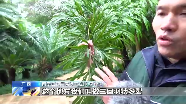 南宁植物园高级工程师 李德祥:它的叶片跟别的苏铁不一样,这个地方我们叫作三回羽状多裂,它这种叶子比别的苏铁保留了更多原始苏铁的特征。
