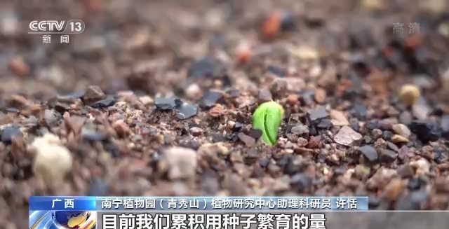 南宁植物园(青秀山)植物研究中心助理科研员 许恬:早期我们的德保苏铁只有370多株,后来我们通过人工授粉还有人工播种的形式,数量在不断地扩大,目前我们累积用种子繁育的量已经有9700多株,而且每年的数量都还在不断地提升。