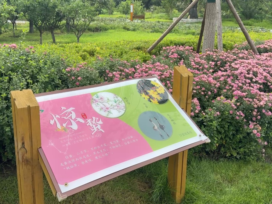 长阳公园巧妙地将生态保育与自然教育深度融合,打造出沉浸式的“森林研学”课堂。南门的二十四节气科普展牌,以传统文化对话现代生态;东西两侧24块特色动植物展牌,生动展示房山本土生物多样性宝藏。