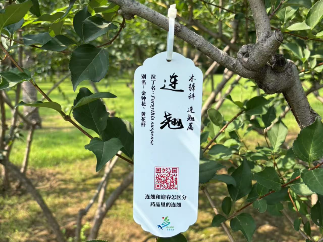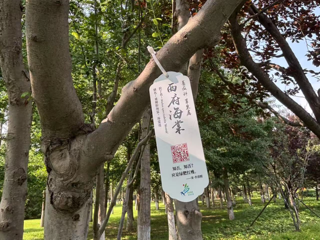 园内树木悬挂专属“身份证”,扫码即可深入了解植物分类与特征细节。