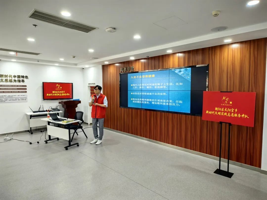 “在我们的日常生活中,腰腿痛是一种较为常见的疾病,超过80%的人都有过腰腿痛的病史。多数情况下,腰椎疾病的病因与长期错误的坐姿紧密相关,也就是说‘坐’不对了也会造成严重的疾病。身体直立时腰椎间压力是最小,正确的姿势应该坐凳子的三分之一处......”现场,郭炯硕医师用通俗易懂的方式向大家讲解了形成腰椎、颈椎病等多个疾病的成因及预防办法,并结合生活中的多个角度向大家传递了科学、实用的医学健康理念。