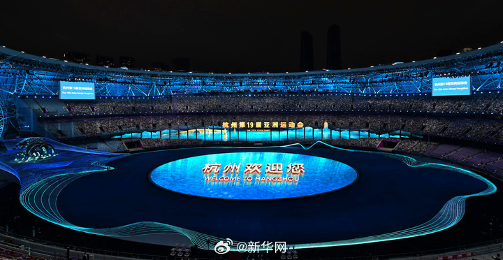 杭州第19届亚洲运动会开幕式23日晚在杭州奥体中心主体育馆举行,晚间8时许,开幕式正式拉开帷幕。