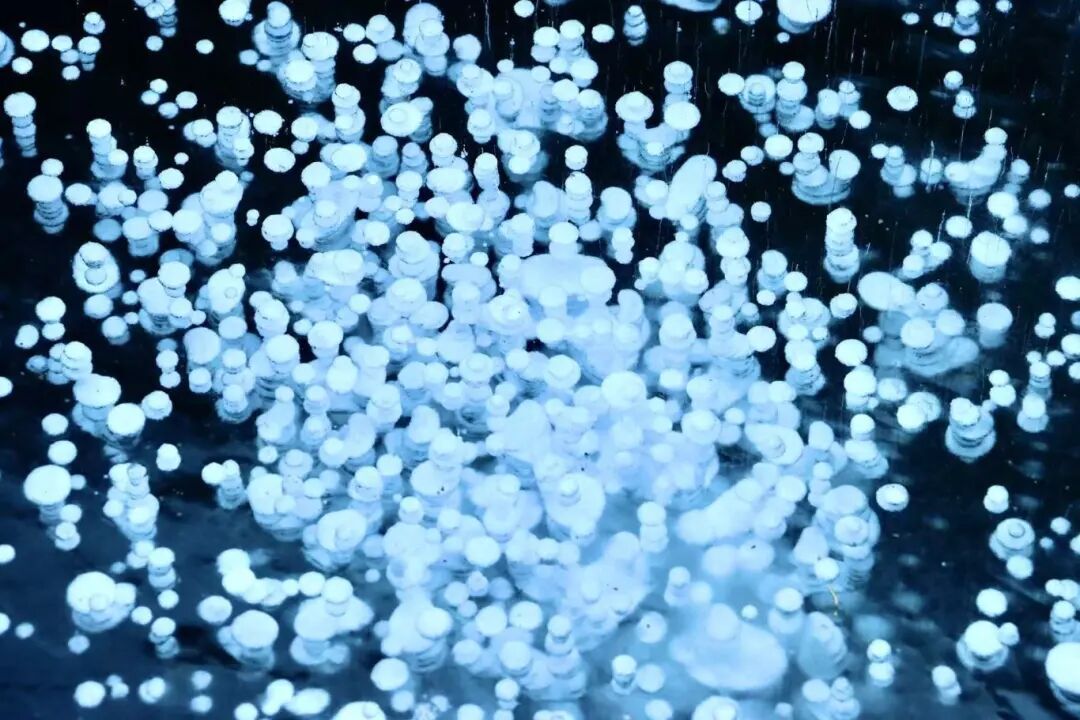1月20日,记者走进龙庆峡风景区冰川峡谷,平坦开阔的天然冰面延展向前,最引人注目的便是那些藏在冰面中的“气泡冰”——阳光穿透冰层,串串气泡清晰可见,有的如珍珠串联,有的如星云散落,将冬日的美好定格。