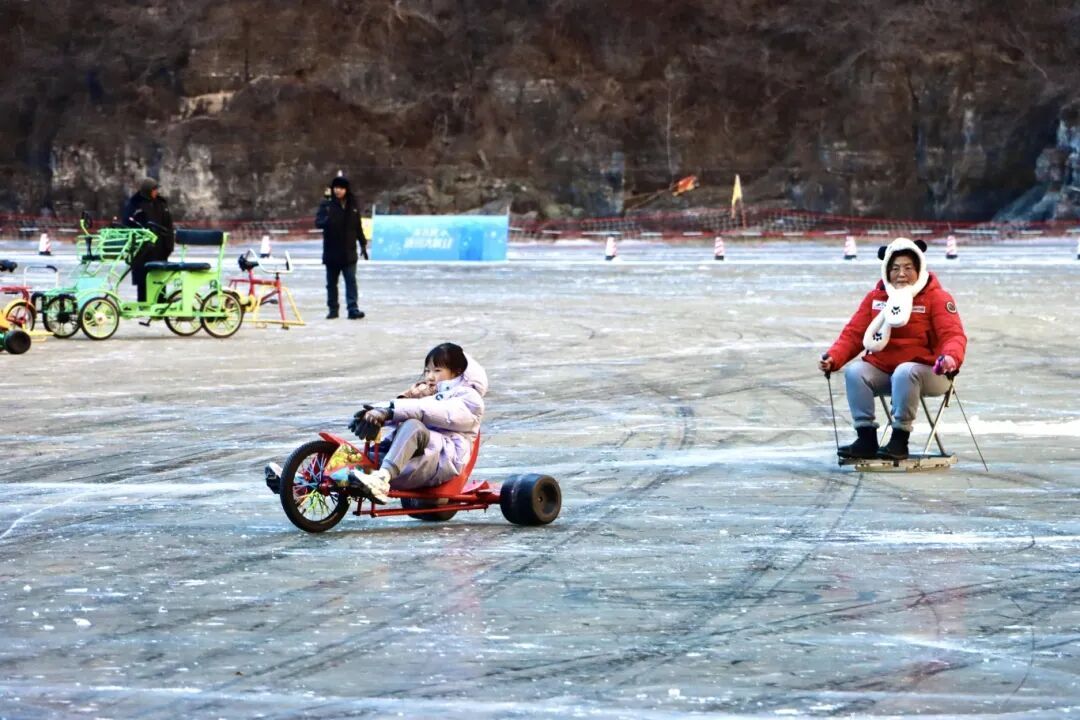 不仅如此,龙庆峡风景区还根据不同游客的需求,设置了多种套餐。既有包括儿童海豚冰车、冰上自行车,家庭三至四人冰上游览车等十余种项目畅玩的基础套餐,也有包含冰上碰碰车、麋鹿雪橇、哈士奇雪橇等兼顾趣味性和体验感的套餐,让游客在赏景之余,感受不一样的速度与激情。