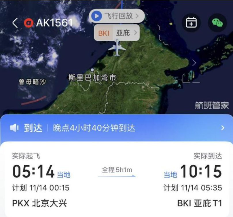 14日,该名亚航AK1561航班的乘客告诉记者,该航班原定于14日零时15分从北京大兴国际机场起飞,计划于当地时间5时35分降落马来西亚亚庇(哥打基纳巴卢)机场。当天,飞机进入滑行阶段准备起飞时,突然接到通知折返。随后,飞机再次开始滑行,却又再次折返。