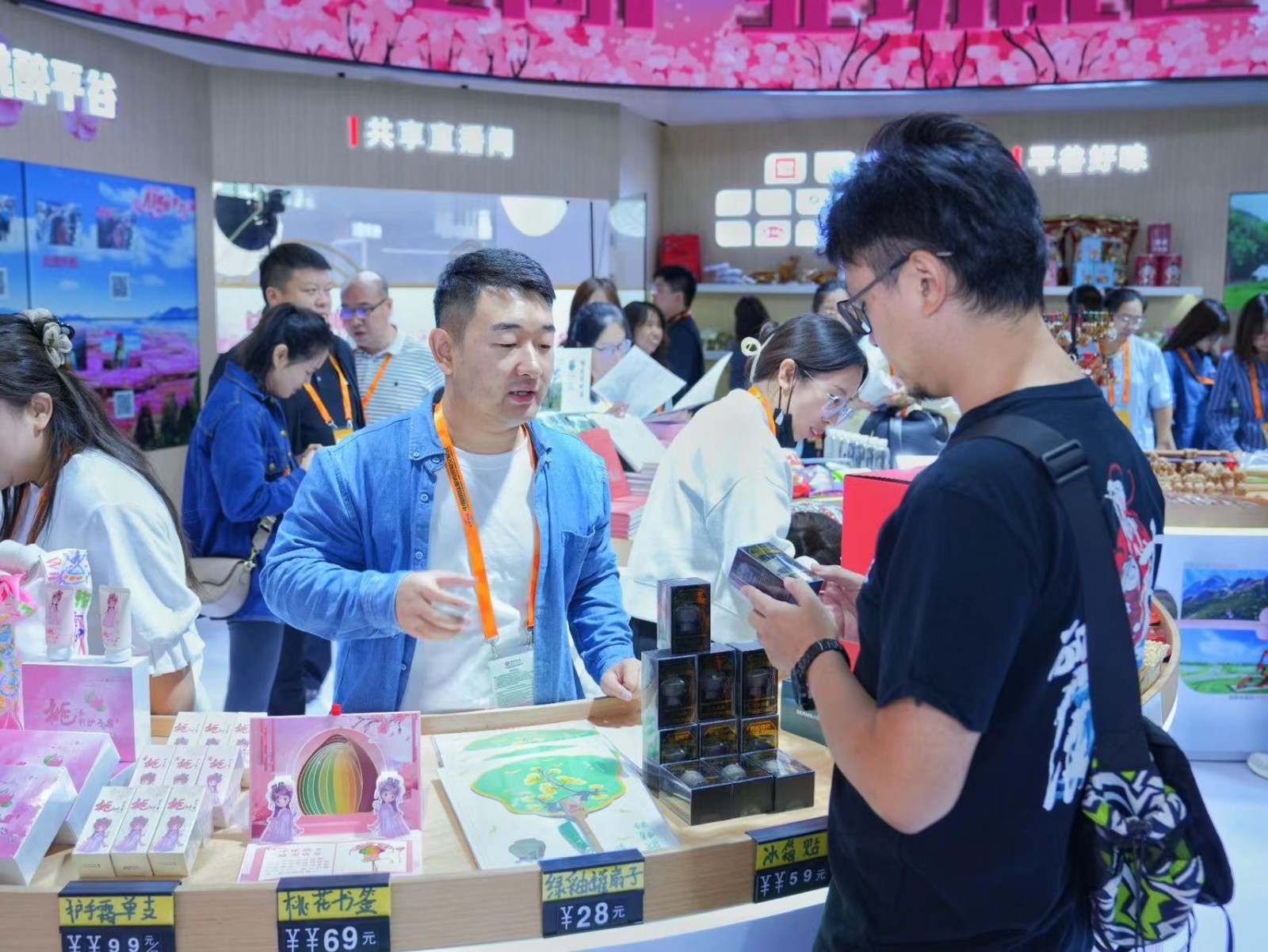 平谷展区精心筹备,携手35家线下企业,共同打造了集好景、好宿、好味、好物四大板块于一体的综合展示平台。展区不仅保留了去年静态展示的“高大尚平谷会客厅”精髓,更创新性地融入了电商直播产业功能区的元素,增设了动态共享直播间,实现了线上线下同步闪耀,为观众带来了前所未有的沉浸式体验。为让游客更深入地体验平谷的魅力,展区还设置了多个互动环节,让每一位到访者都能参与其中,感受平谷的独特风情。