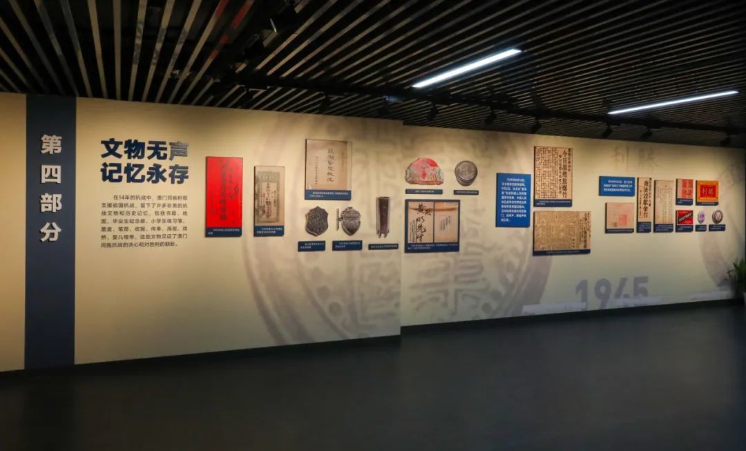 在14年的抗战中,澳门同胞积极支援祖国抗战,留下了许多珍贵的抗战文物和历史记忆,包括书籍、地图、毕业生纪念册、小学生练习簿、墨盒、笔筒、收据、传单、海报、戏桥、婴儿帽等,这些文物见证了澳门同胞抗战的决心和对胜利的期盼。