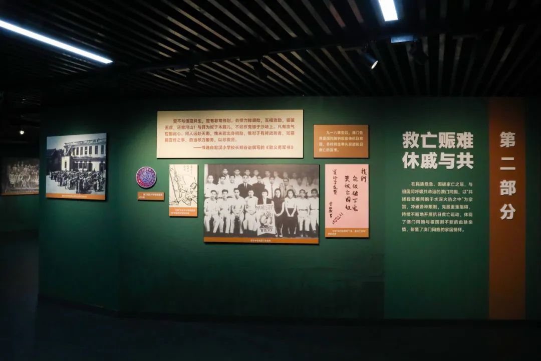 展览共分为四个部分,分别展示了反映抗战时期澳门社会生活、澳门社会各界支援祖国抗战、澳门同胞回国支援抗战以及澳门同胞抗战文物的图片。