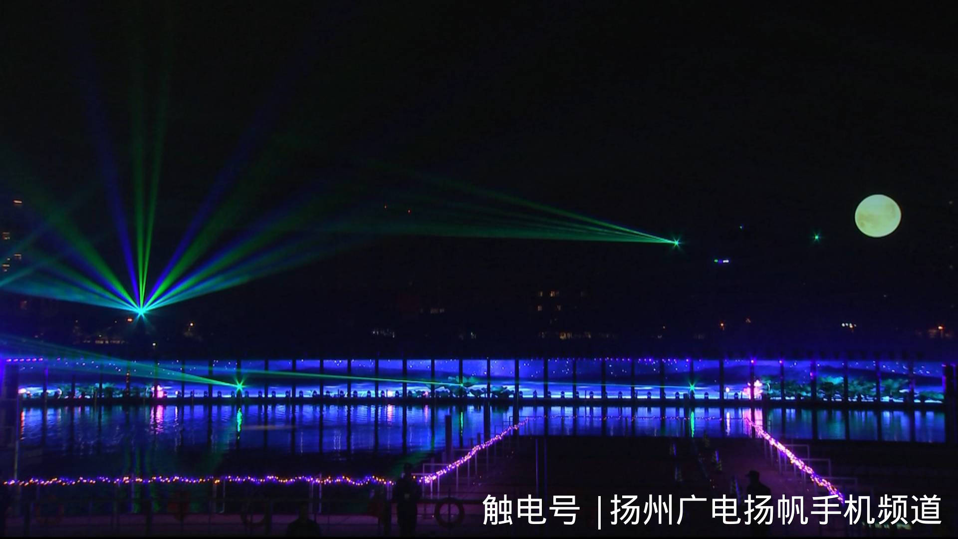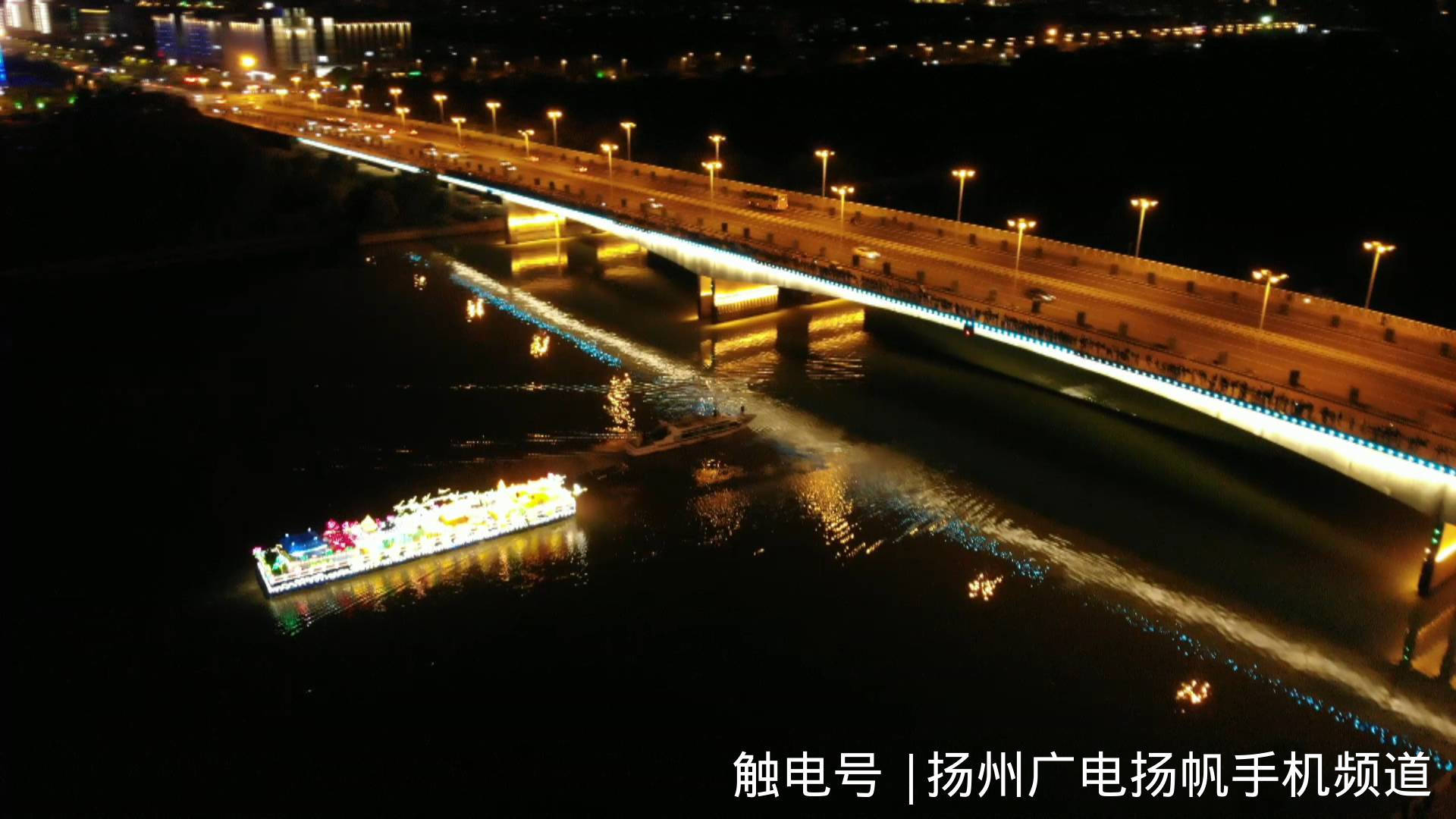 晚上7:30分,伴随着优美动听的乐曲,在五彩斑斓的灯光映射下,流淌千年的京杭大运河流光溢彩、魅力四射。1600多盏LED灯时亮时灭,不断变幻,完美演绎了《花开迎宾来》、《春江花月夜》、《扬帆新时代》三大篇章,用灯光勾勒水韵扬州,用秀影演绎诗意运河。