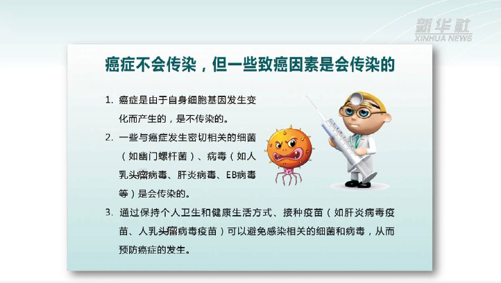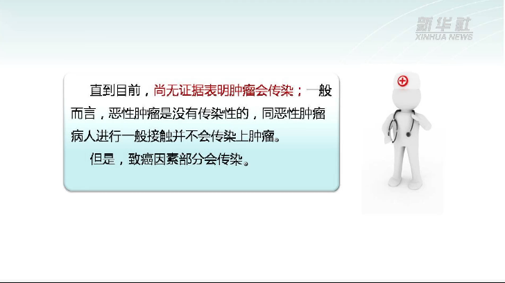 4月15日至21日是全国肿瘤防治宣传周,今年的主题是“癌症防治 早早行动”。提到恶性肿瘤,很多人都会谈癌色变,甚至一些人会问医生,癌症会传染吗?专家表示,目前,尚无证据表明癌症会传染,但是,一些与癌症发生密切相关的细菌和病毒是会传染的,需要我们保持警惕。