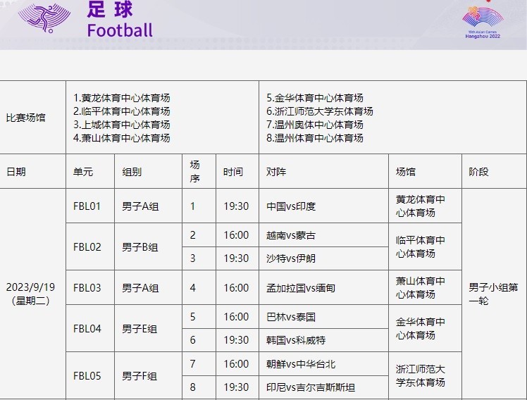 杭州亚运会部分赛事率先进行 今晚中国男足亚运队迎战印度队