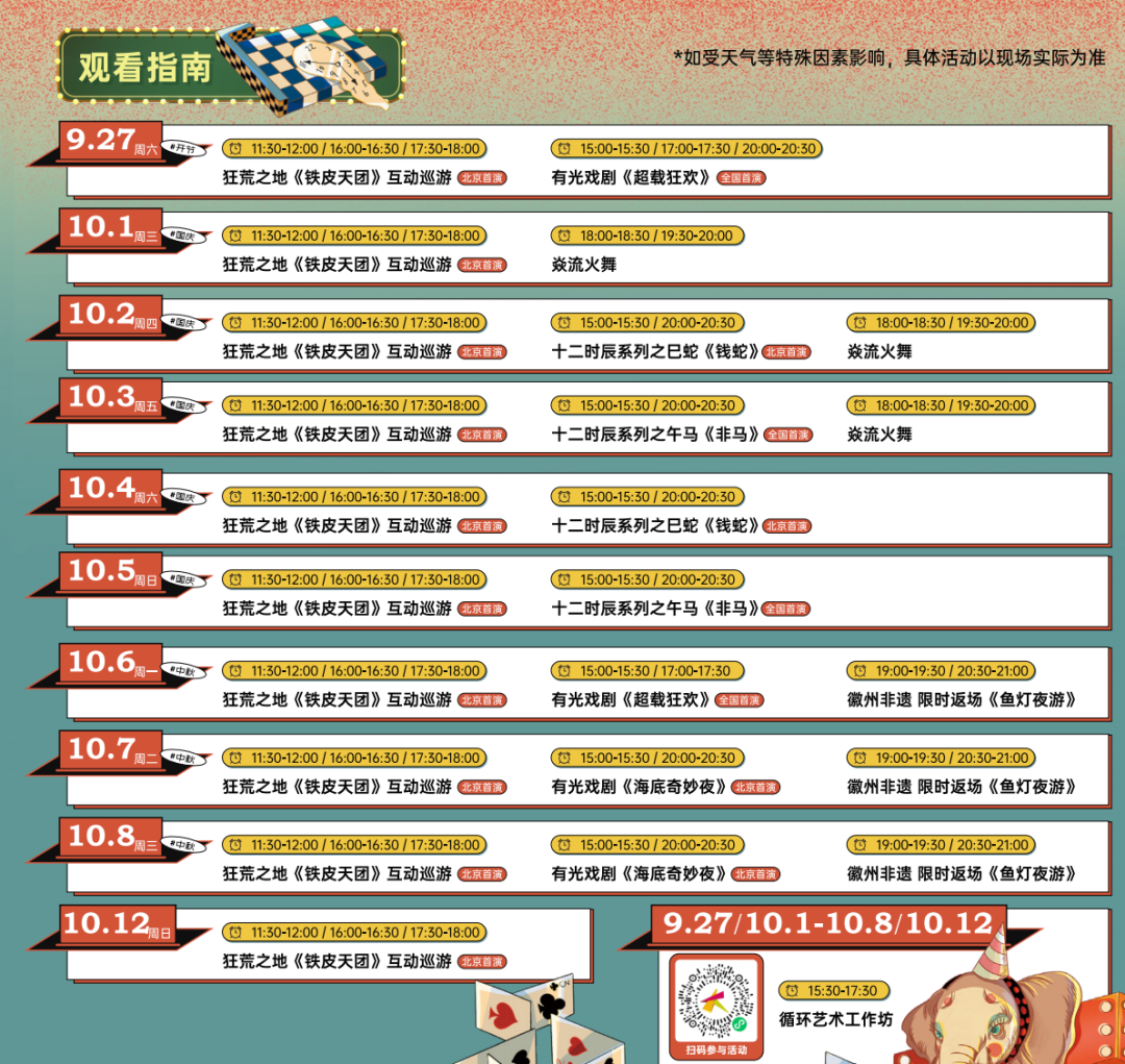 本届艺术季戏剧板块重磅升级,“有光剧团”带来多部北京乃至全国首演的作品。其中,环境装置戏剧十二时辰系列之《午马·非马》《巳蛇·钱蛇》将戏剧融入特定环境,带来打破传统的观演体验;《超载狂欢》与旧物改造环保主题剧《海底奇妙夜》则进一步呼应本届艺术季的主题,带领游客步入一个又一个戏剧奇遇时刻。