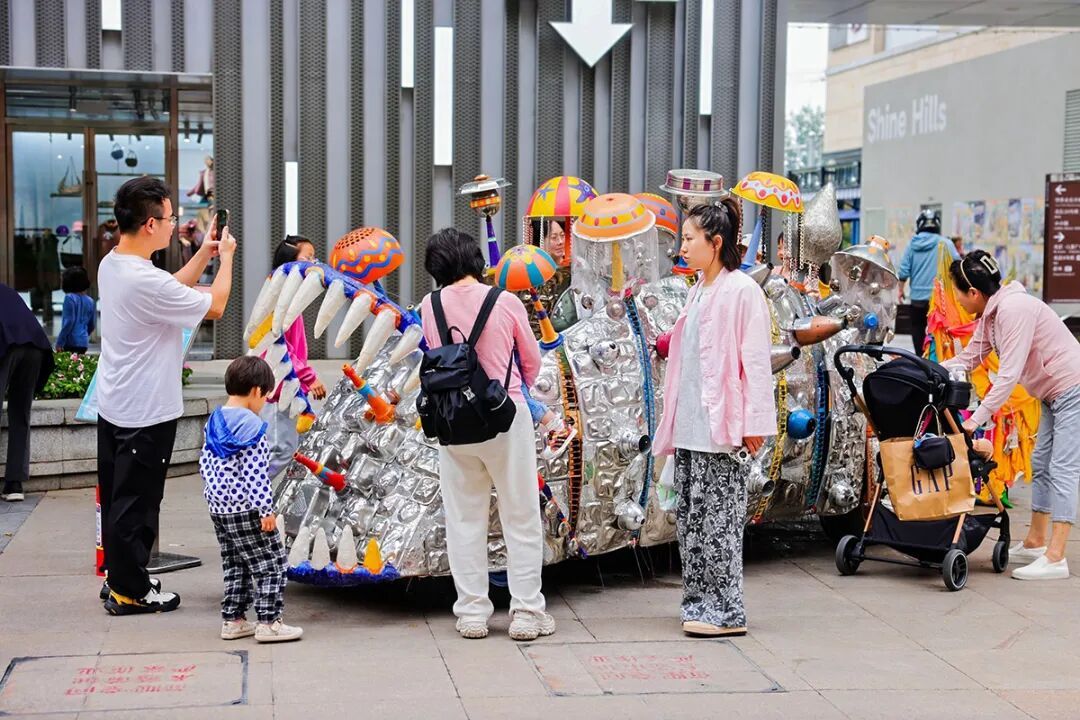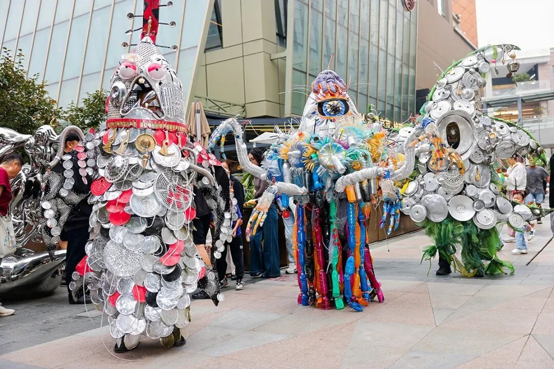 “狂荒之地”将废旧金属美学延伸至动态领域,打造出“铁皮天团”巡游。这些由齿轮、钢板等再造的“机械精灵”,如同从未来异星穿梭而来,在街区巡游,与观众零距离互动。