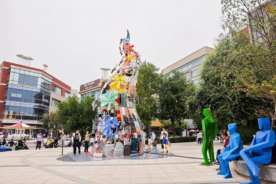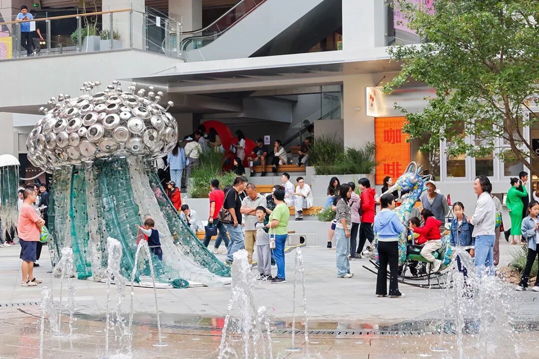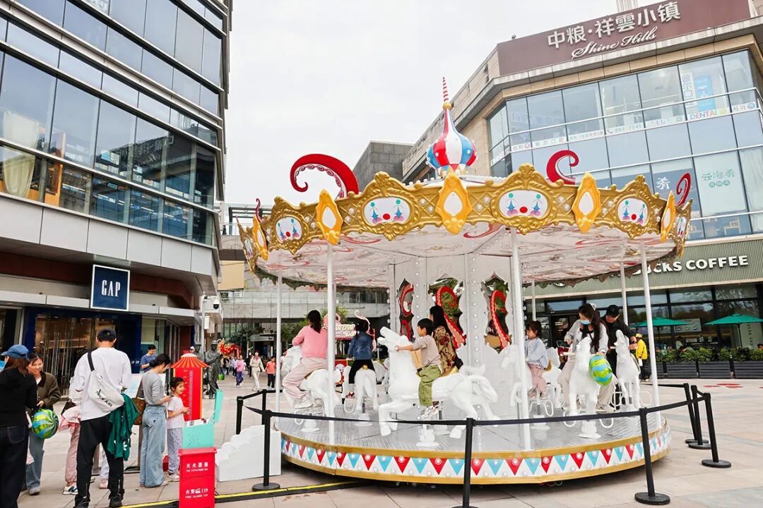 独立插画艺术家Polly打造的“章鱼星旋转木马”矗立在公共空间,即便在白天也满是童话感,成为市民热门打卡地。位于喷泉广场的“奇幻舞台”则以缤纷图案装饰、精致的布景吸引市民驻足,各类艺术元素点缀着小镇各个角落。