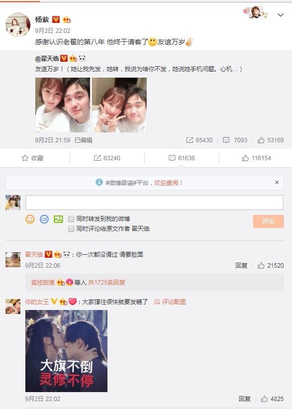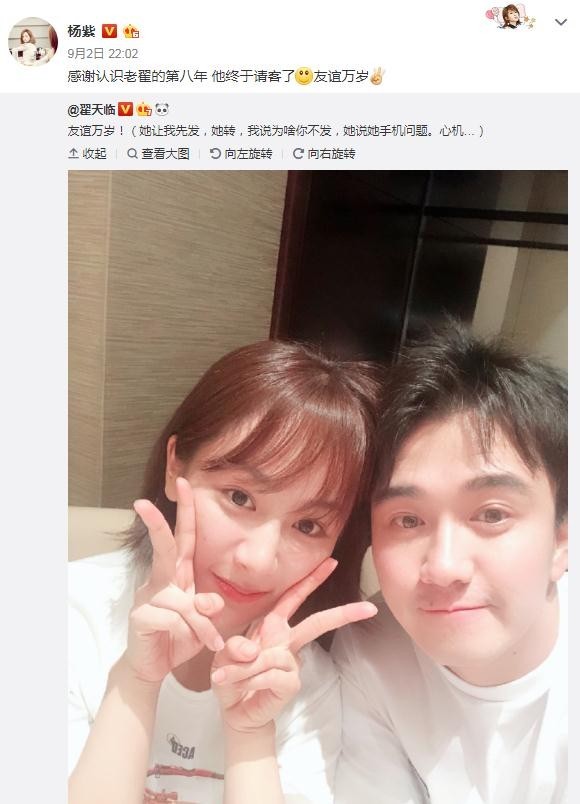 虽然张一山没在旁陪伴失意姐姐,好在八年老友翟天临请杨紫吃饭安慰。关键是他们二人的合照,这个才是重点。