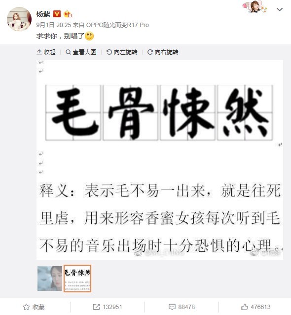 9月2日晚,杨紫更博,一张哭戏剧照,“有一种虐叫做哭掉睫毛的虐”。
