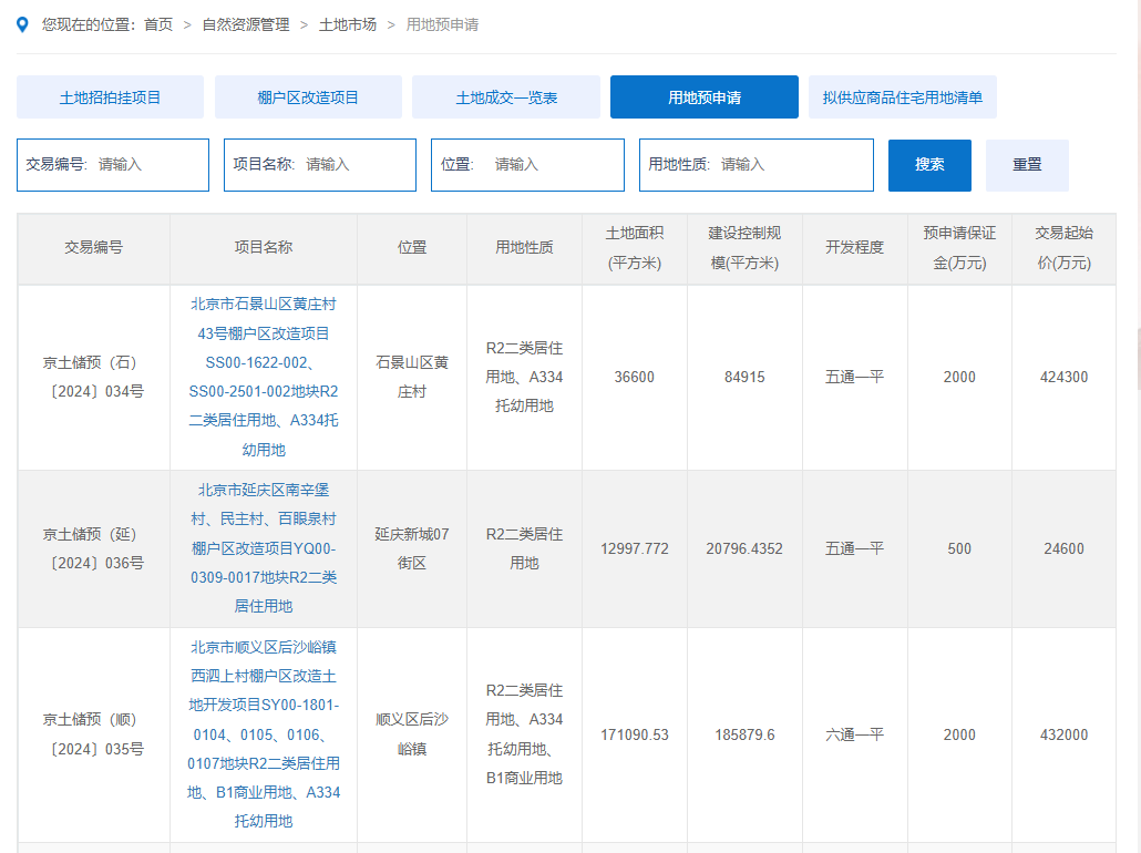 近日,北京市规自委挂牌2宗地块,分别位于石景山、顺义、延庆,3宗地总面积约22.07万㎡,建筑规模约29.16万㎡,3宗地交易起始价88.09亿元。