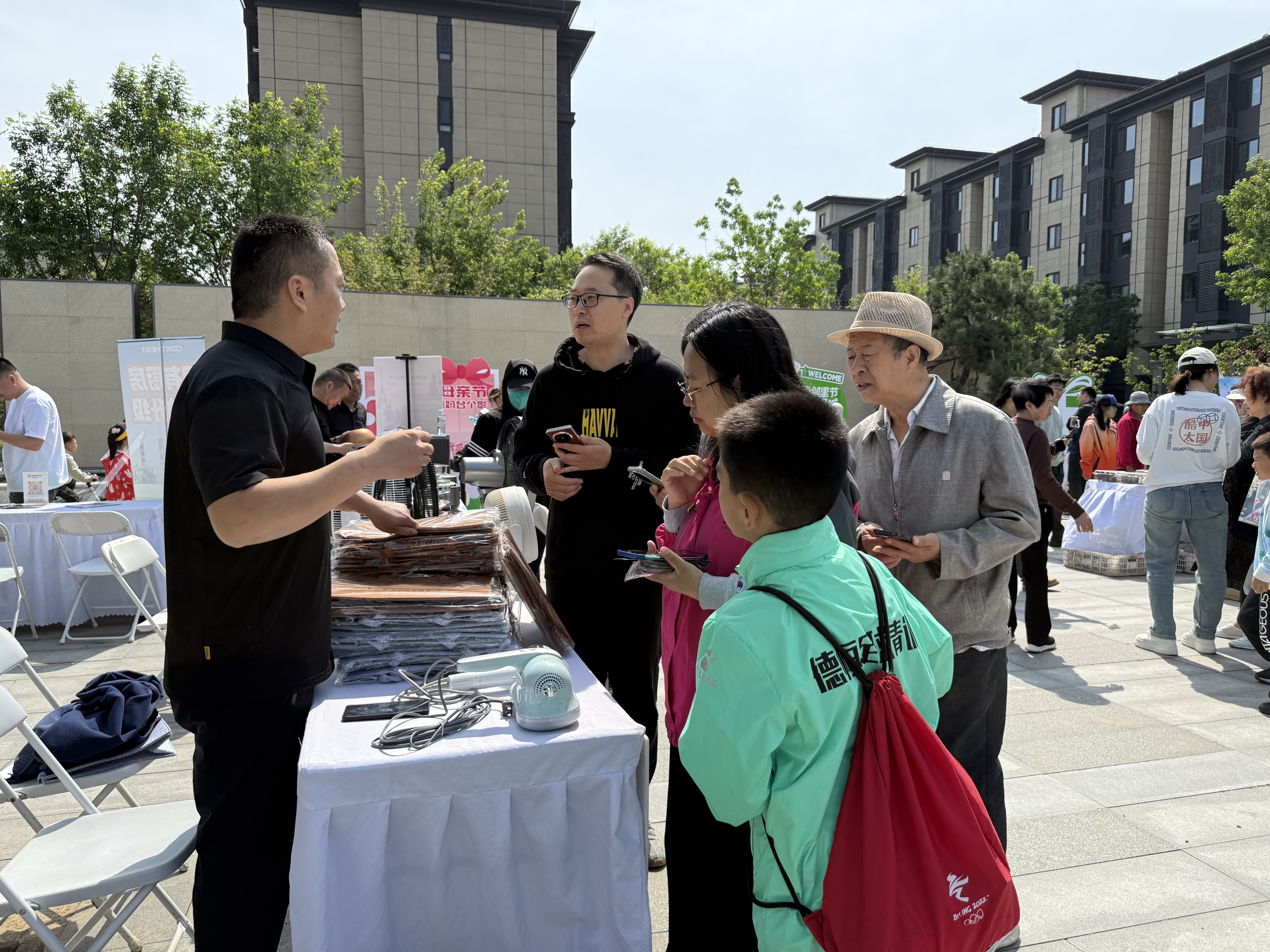 市集区,社区广场“变身”生活能量场,居民下楼即享“逛吃+健康+焕新”一站式体验。 潞城林场展位前,沙瓤爆汁的番茄、裹着露珠的花菜和黄瓜、伞盖圆润的蘑菇等有机农产品受到居民朋友们的积极响应。“清晨采摘,中午上桌,这菜鲜得能掐出水!”工作人员介绍道。万象汇品质生活展区,智能家居、数码产品、日用好物等摊位火热进行。口腔义诊摊位前则吸引了银龄组驻足咨询,听取医生个体化建议。