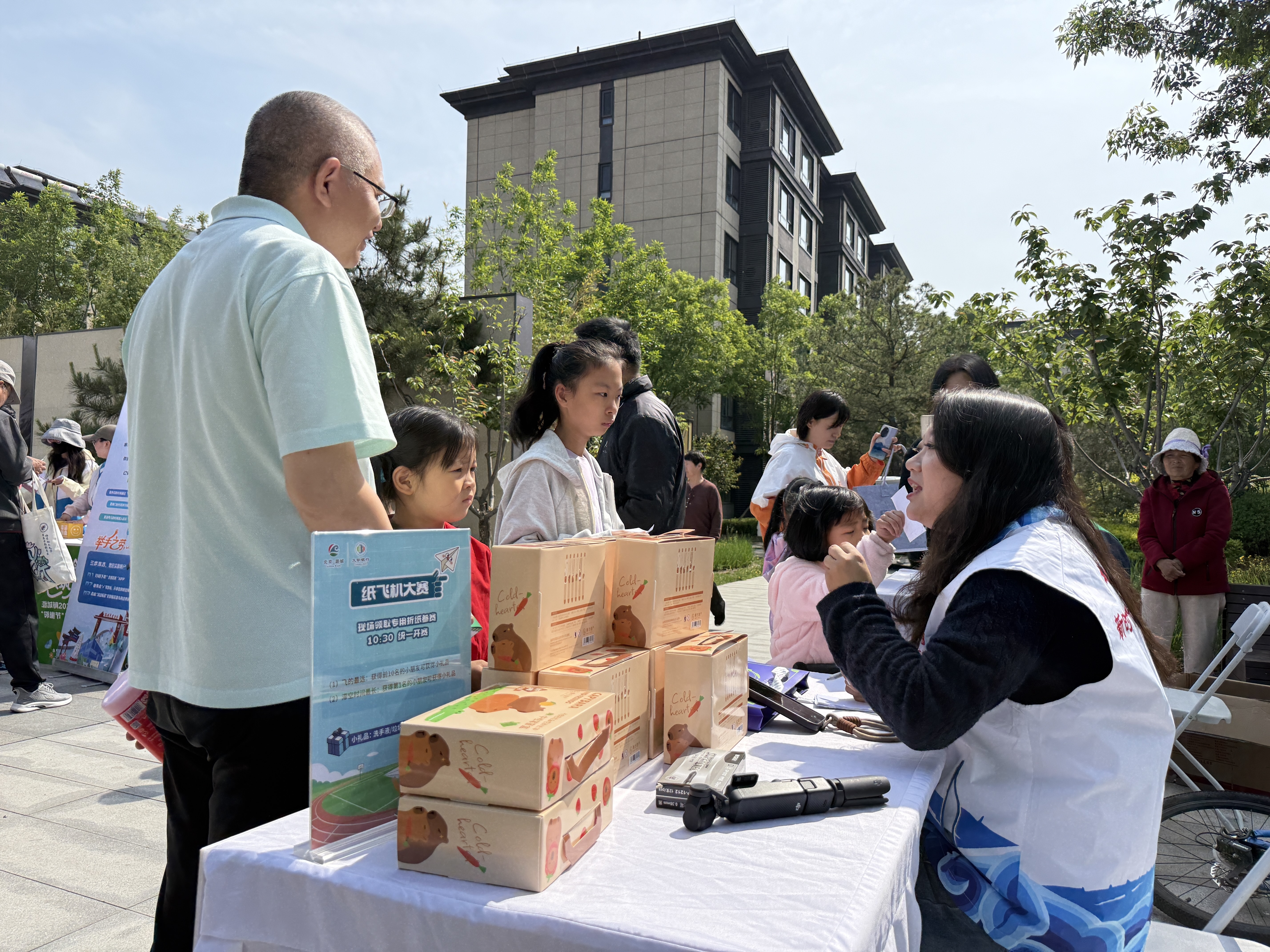 “折飞机大赛”现场,一场“科学+创意”的飞行盛宴激情上演。孩子们通过调整纸飞机折法、飞行平衡度探索飞行奥秘。“我的纸飞机用了‘升力翼’设计,能飞得更远!”一位11岁的参赛选手向周围人讲解着自己的飞行原理。现场共吸引50余名少年儿童参赛,百余人围观赛事。
