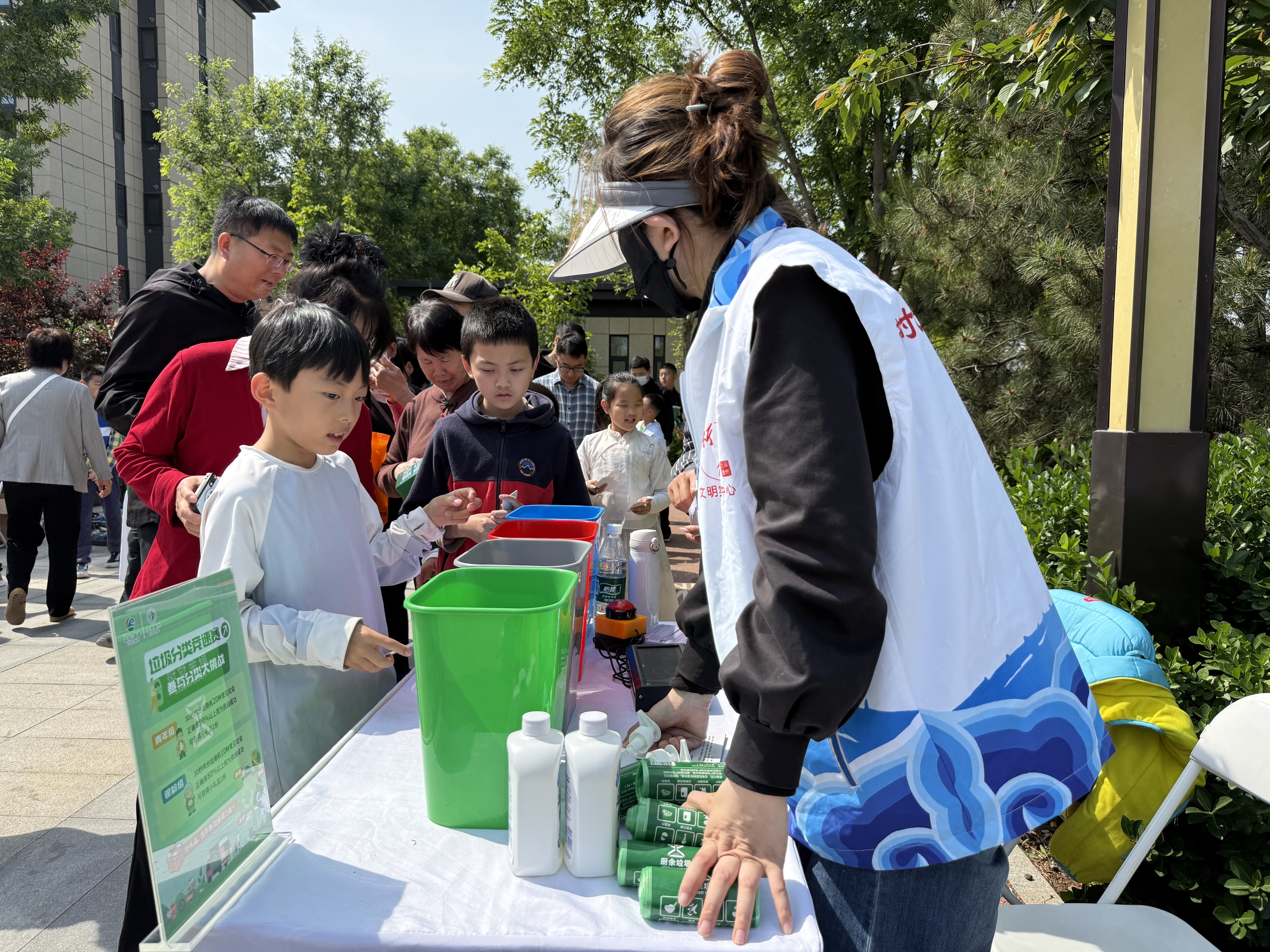 垃圾分类竞速赛区域,“代际擂台”战况激烈,居民们30秒限时挑战分类10种垃圾。据统计,现场居民垃圾分类知识知晓率达98%。