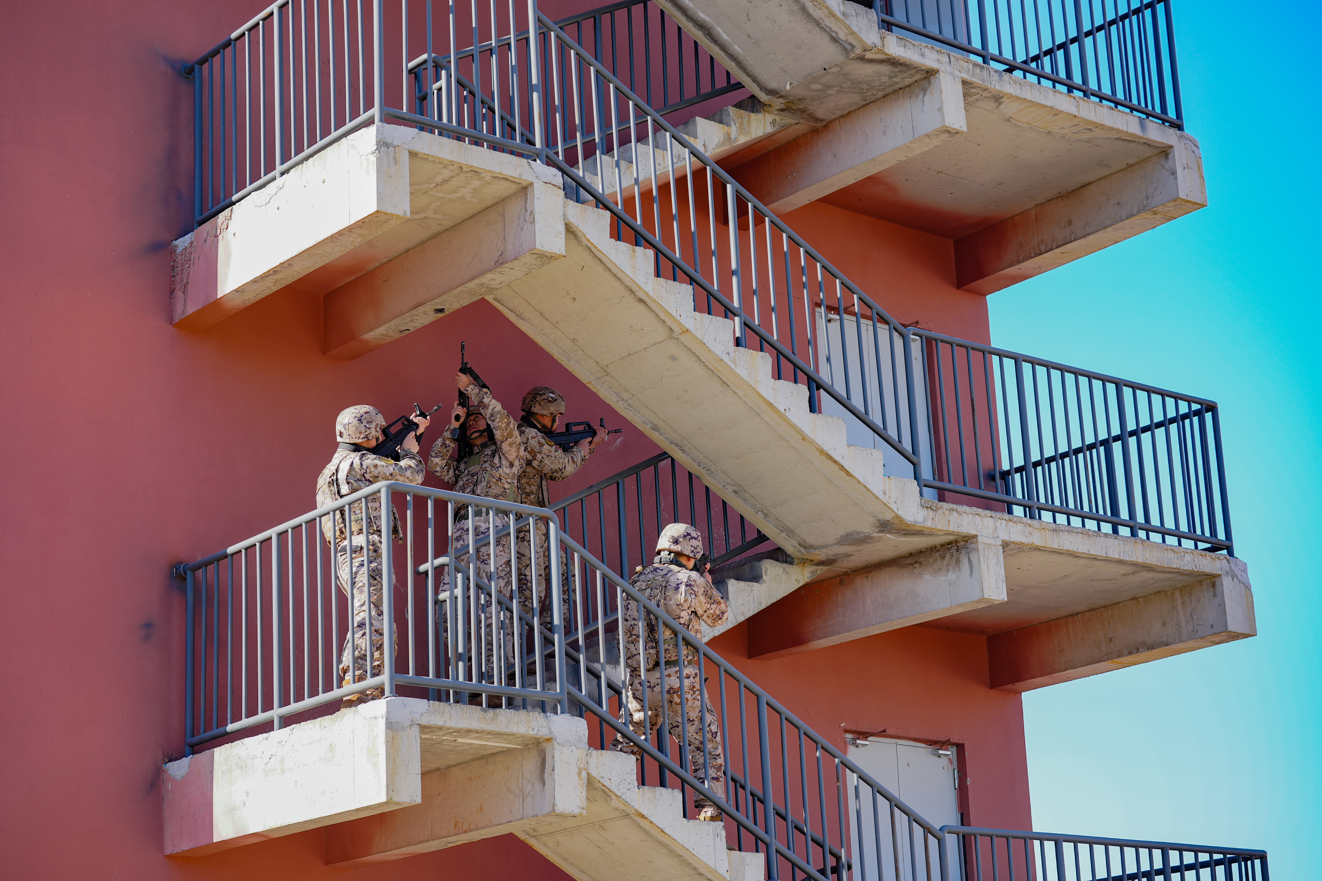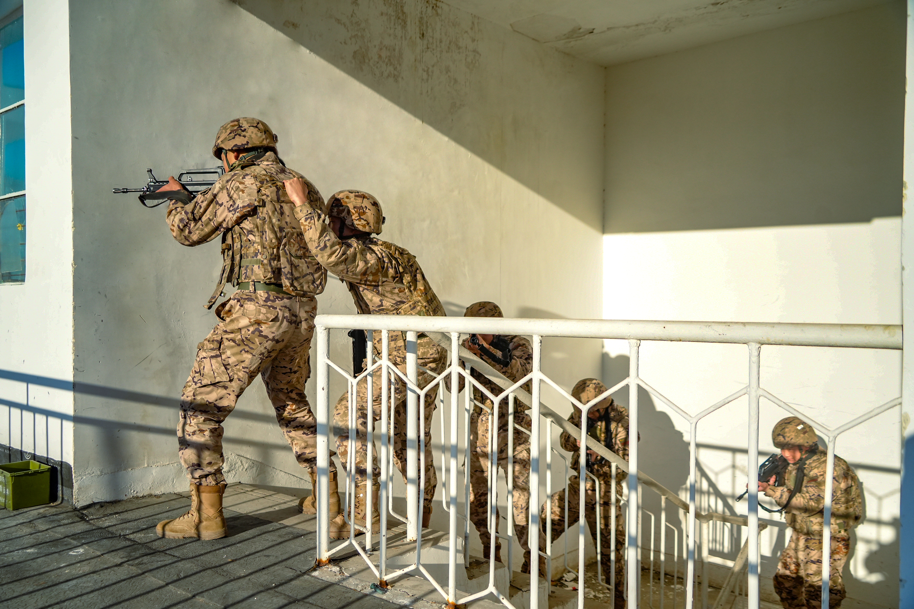 训练紧扣实战需求设定课目,立足复杂陌生场景从难从严施训,重点围绕小组协同战术运用、交替掩护搜索推进、快速追击目标处置等关键内容开展专攻精练,全程贴近实战场景锤炼实战本领。