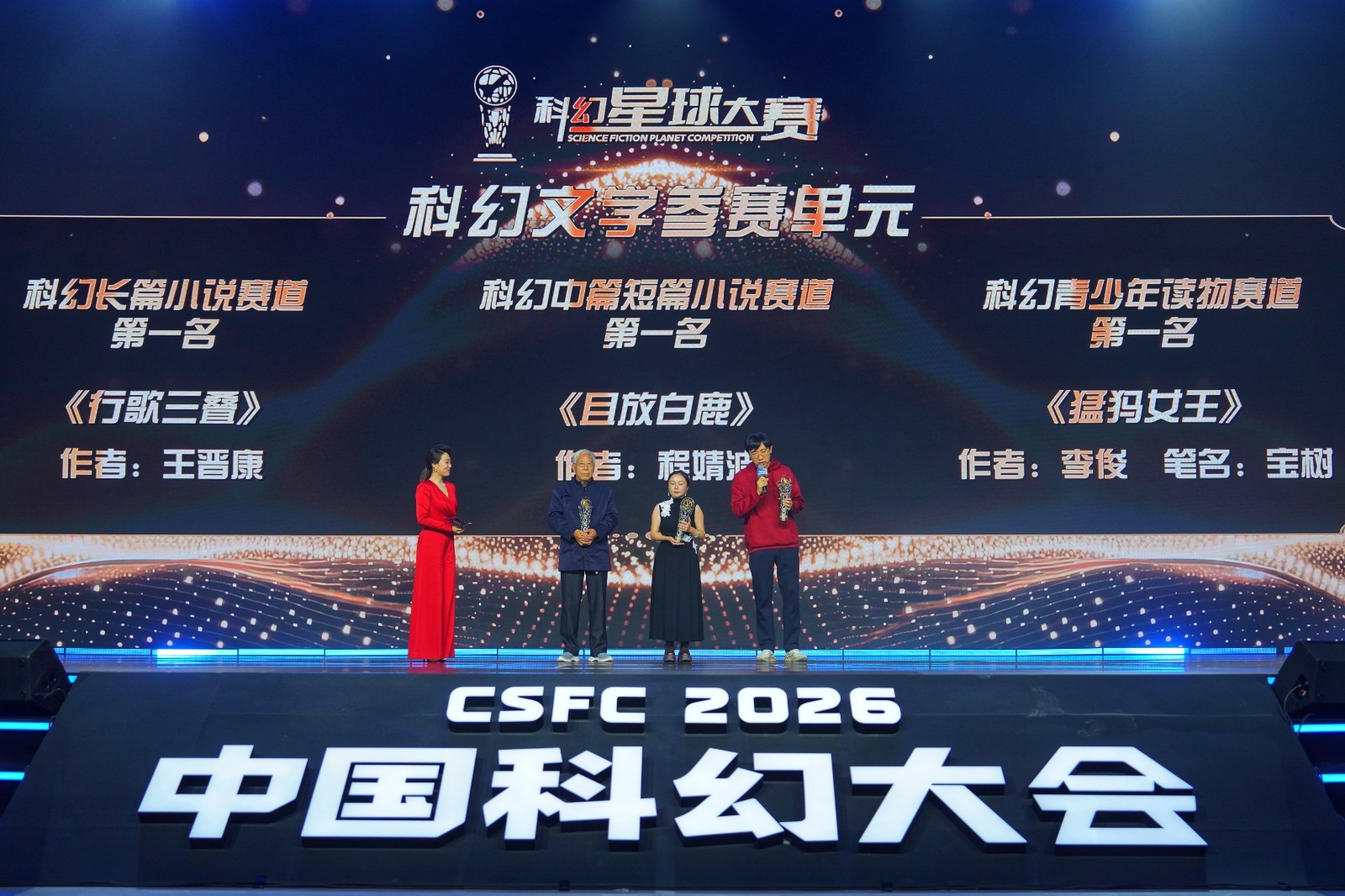 科幻文学参赛单元中,王晋康《行歌三叠》、程婧波《且放白鹿》、宝树《猛犸女王》荣获第一名。这些作品以深厚的人文底蕴与硬核科幻构思相结合,拓展了中文科幻的思想边界与叙事维度,在哲学思辨、东方美学与生命关怀层面呈现出鲜明特色,为中国科幻文学注入新的文化厚度与时代精神。
