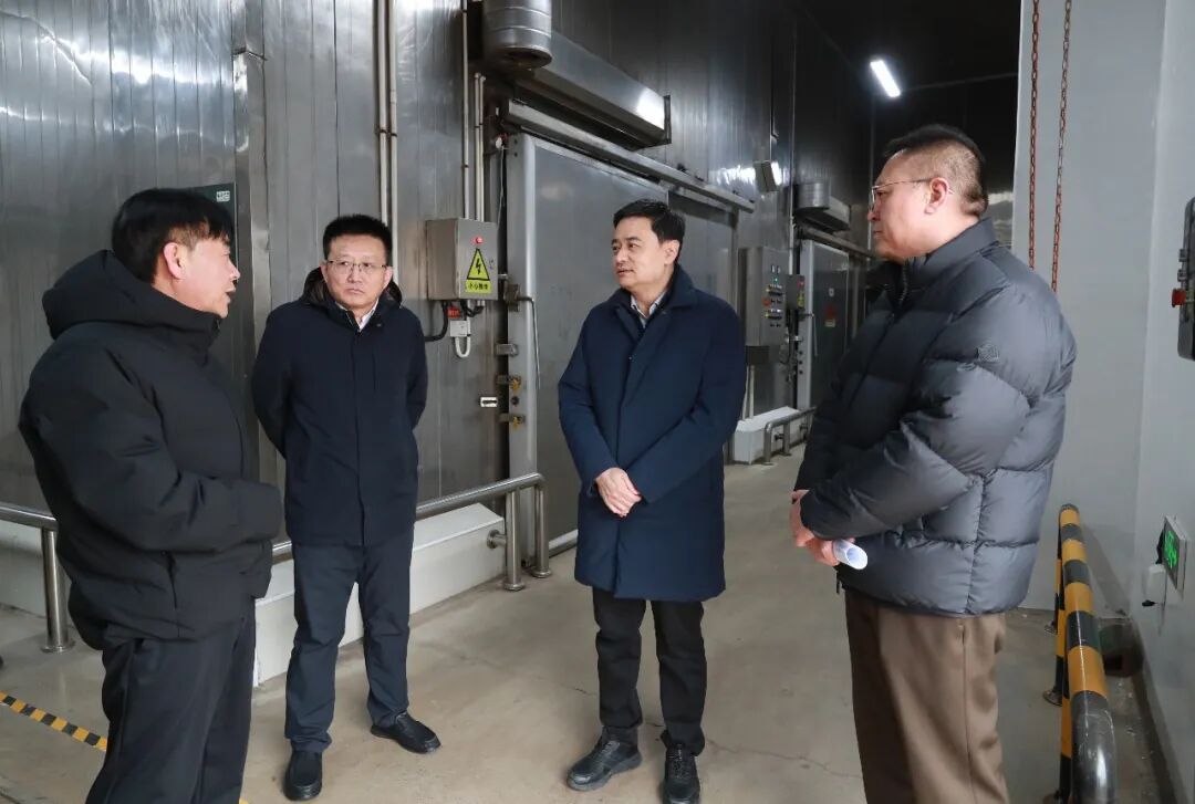 在顺鑫控股鹏程食品分公司,崔小浩察看了分拣区运行状况,详细了解食品供应管理流程、原材料质量把控及全链条监管等情况。