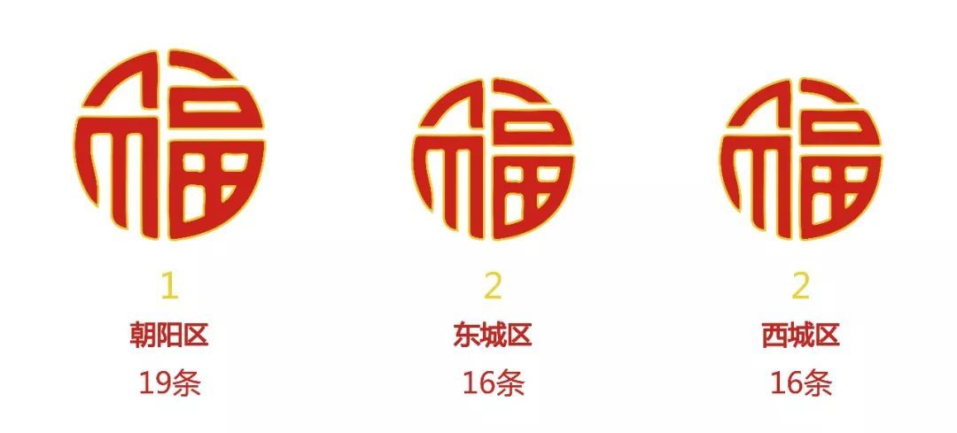 其中,朝阳区数量位居首位,作为老城的东城区、西城区次之,并列第二。