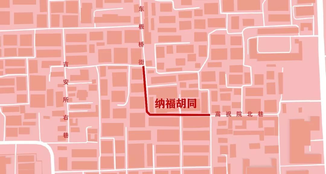 乾隆时称内府大街。宣统时称内府库。民国36年(1947年)称纳福胡同。1949年后沿称。曾改称鼓舞胡同,后恢复原名。