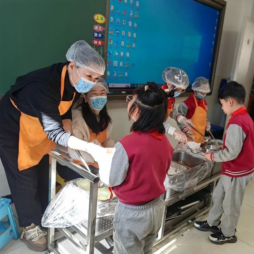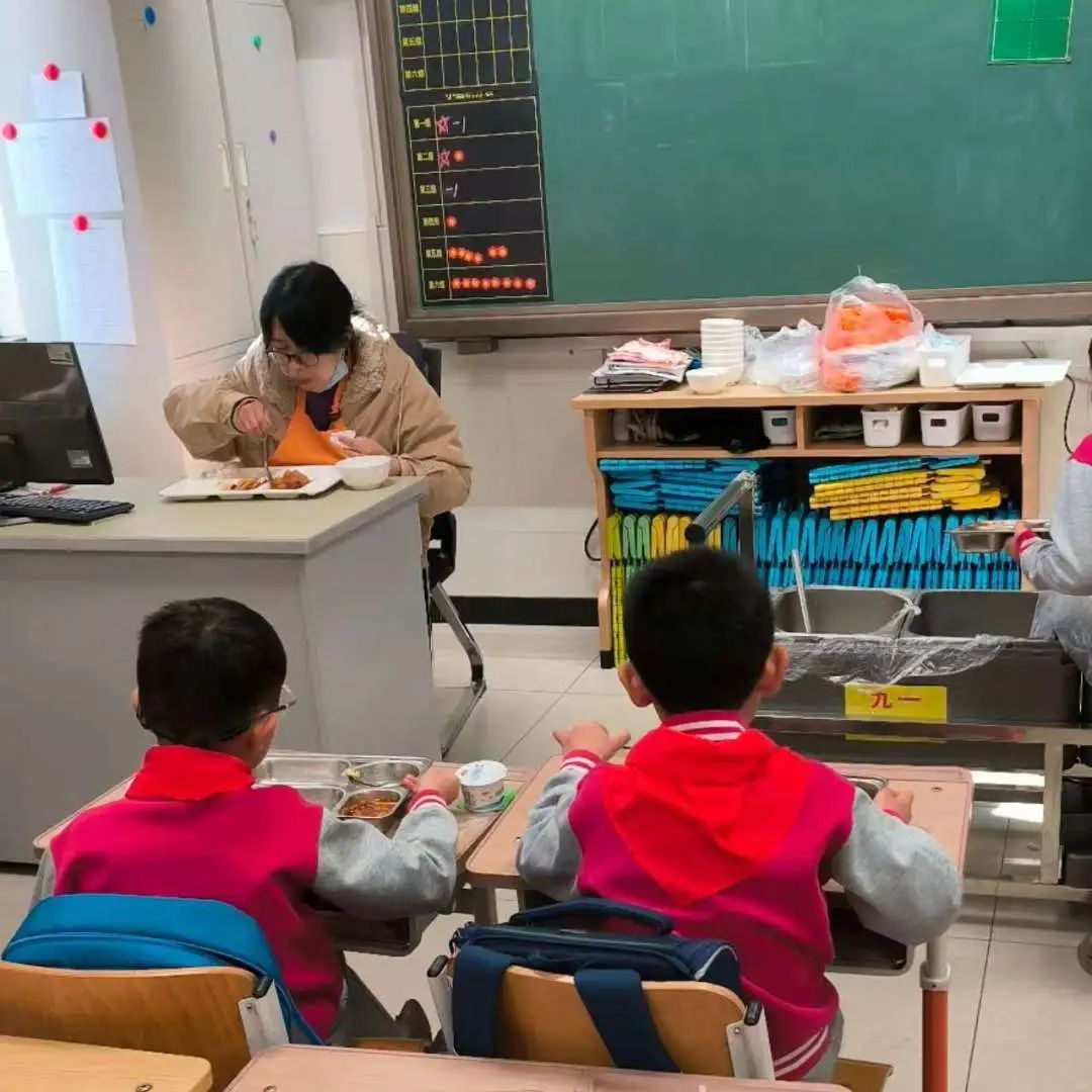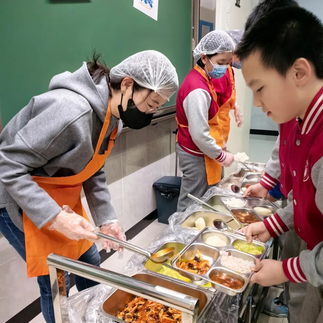 当清脆的餐具碰撞声响起,同学们在老师的引导下有序地排起了长队,期待着那一份份美味的餐食。校领导化身成了“美食鉴定师”,和孩子们同桌共餐,一起品尝这份开学的礼物。学校邀请每班一位幸运的家长,亲身体验了学生的用餐环境。