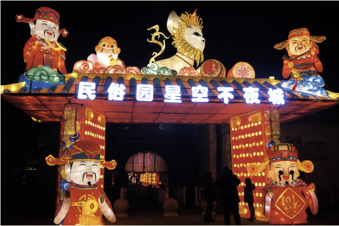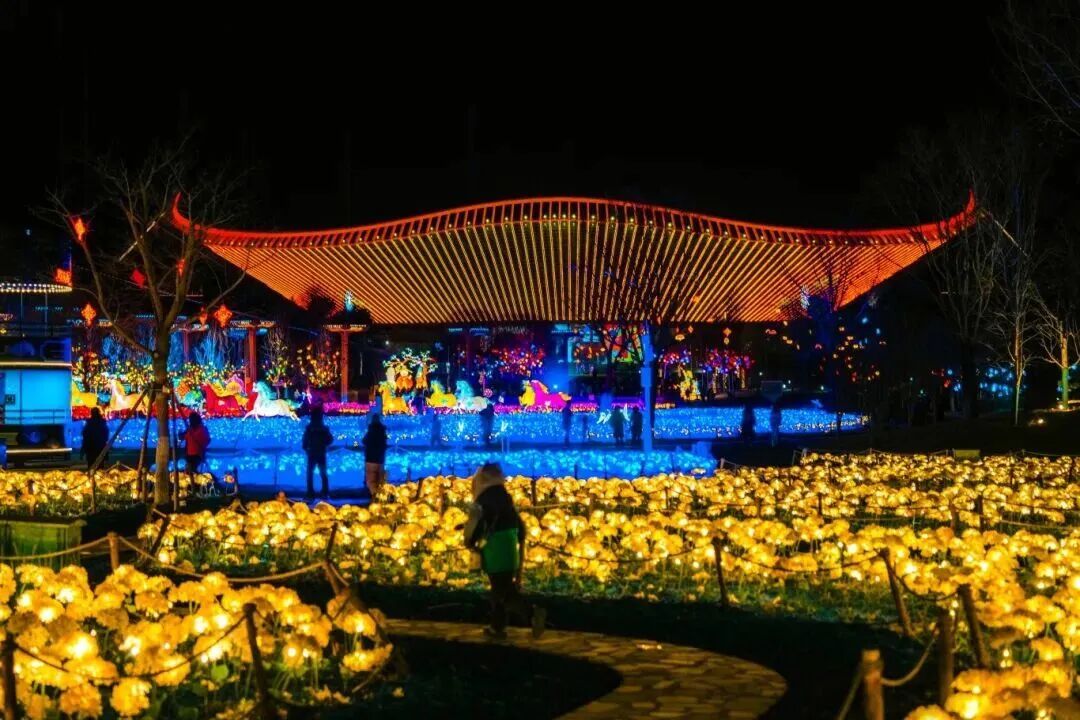 位于顺义的河北村民俗园新春灯会,活动丰富、演出精彩,园区内摆放着大型传统花灯以及现代时尚光影装置,十分适合全家打卡拍照、定格美好瞬间。
