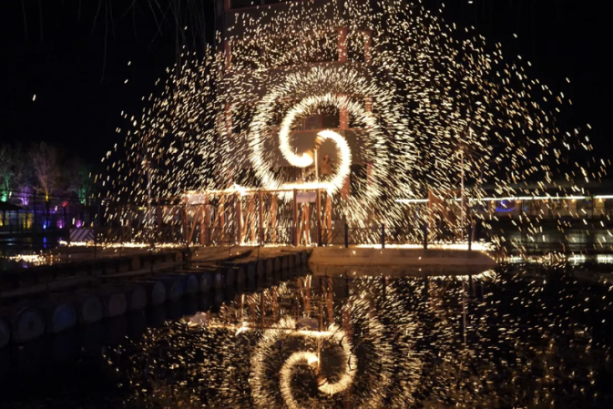 国家级非遗“打铁花”重磅返场,金红火花如星河倾泻,游客可沉浸式感受传统民俗的磅礴魅力。在美食文创市集,50+商户集结,带您尝遍各地小吃。