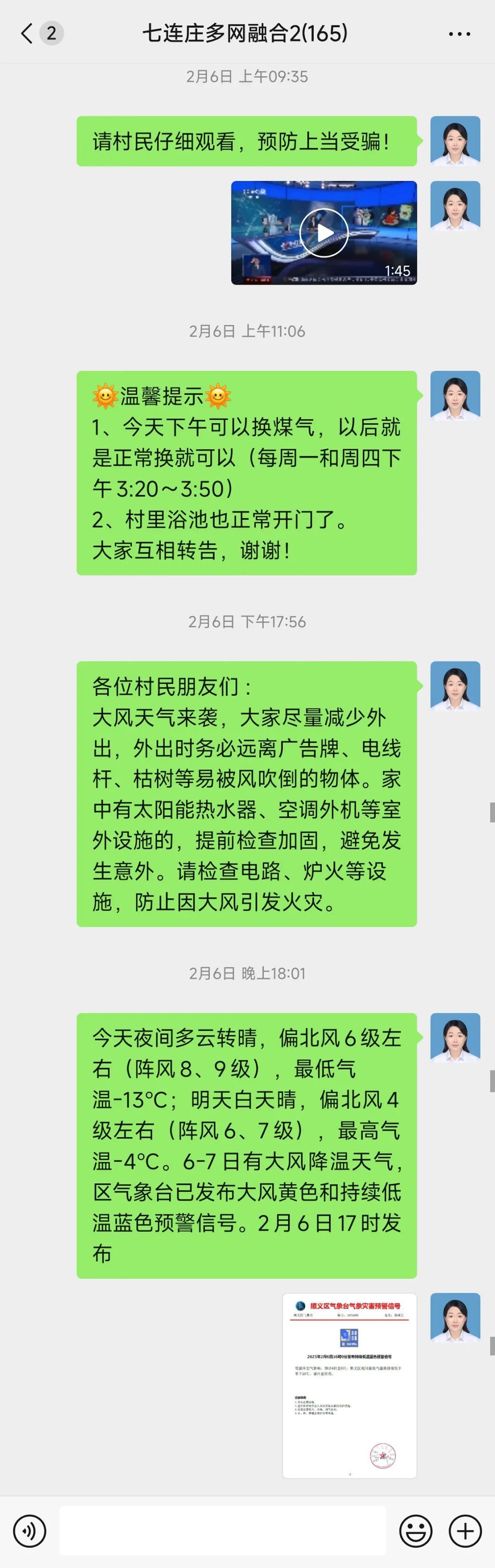 杜女士说:“你们工作那么忙,还来帮我、看我,真是太麻烦你们了。”“多亏了村里的网格员,让我在外工作时多了一份安心,他们还时常会在网格群里发温馨提示,非常暖心。”张先生说。