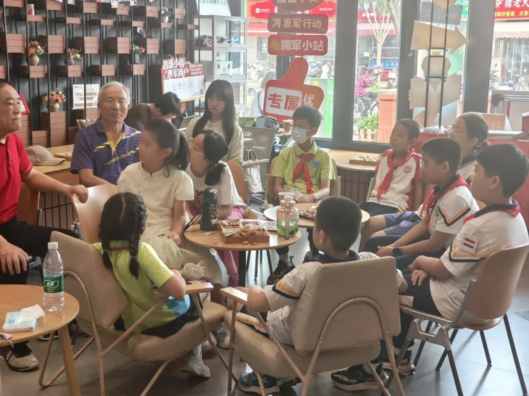 阅兵直播结束后,活动迎来最令人动容的环节——退伍老兵孙承义叔叔,给大家分享了他的师长参加的1951年志愿军“铁原阻击战”。“当时九千人的部队,打到最后只剩一千人,战友们倒在阵地上时,还在喊着‘守住防线’……”孙叔的激昂且充满力量,当提及战场上牺牲的战友、绝境中坚守的日夜时,孙叔声音哽咽,眼角泛起泪光,不少青少年与居民悄悄红了眼眶。分享过程中,老兵主动与昌盛园小学的孩子们互动,用亲身经历为孩子们打开了一扇了解历史的“窗口”,让“英雄”不再是课本里的文字,而是有血有肉、曾为家国拼过命的“爷爷”。