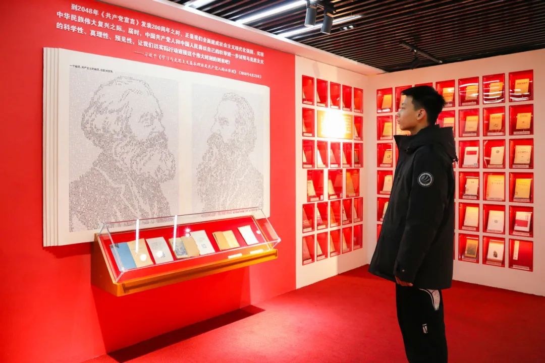 前来观展的小唐同学感慨道:“展览中,那一本本珍贵的手稿、一页页泛黄的历史文献,展示了中国共产党人如何将马克思主义与中国国情相结合,走出了一条适合中国自己的道路。此展对于我有着很大的教育意义,引导我更加努力地用青春奋斗,将来为祖国做出自己的贡献。”