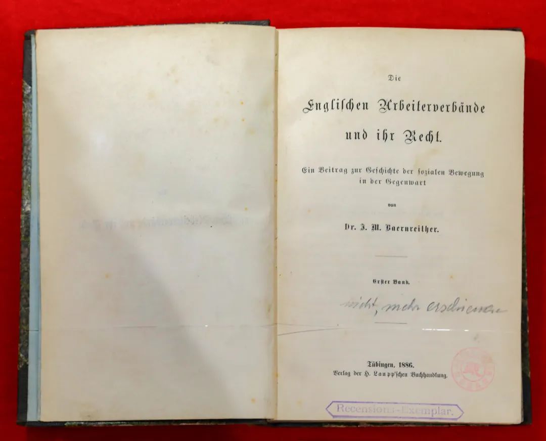 约瑟夫·玛丽亚·贝恩赖特尔《英国工人联合会及其权利。当代社会运动史研究》,第1卷,劳普出版社1886年图宾根版。