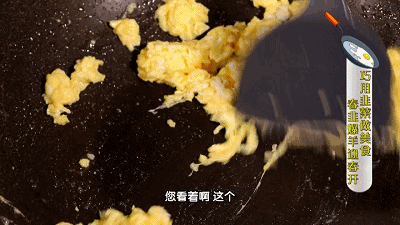 锅烧热加底油,打3只鸡蛋加少许盐打散,待油温5成,一只手慢慢倒入蛋液另外一只手用筷子快速打散,煎至定型即可倒出。蛋液最好现摊现打现加盐,不然很难形成开花状.