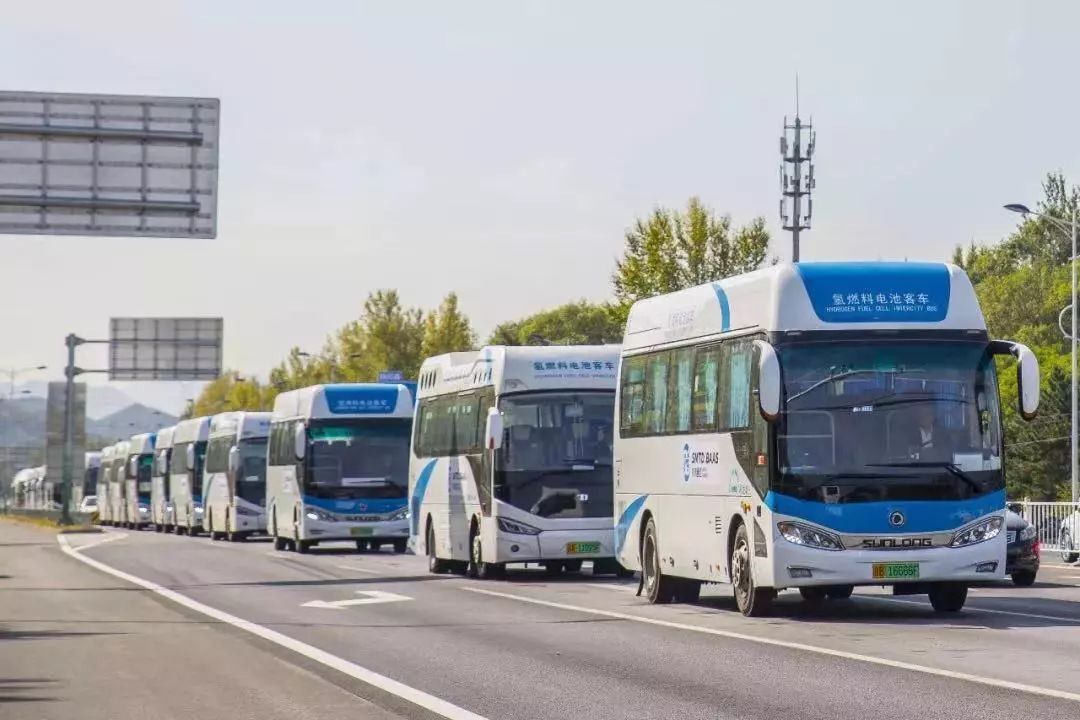 在推动氢能源产业发展的同时,延庆也在积极探索绿色交通应用。世园会期间,已有2辆氢燃料电池客车作为免费接驳车在园区开展示范应用,日均载客量达到200人次,接驳行驶总里程达5500公里。10月9日,30辆氢燃料电池客车圆满完成保障2019北京世园会闭幕任务,成为世园会一道亮丽的风景。