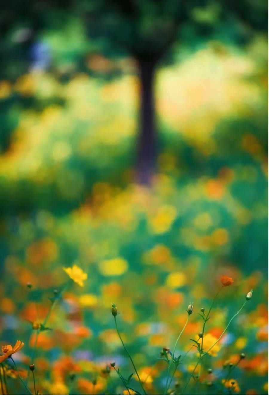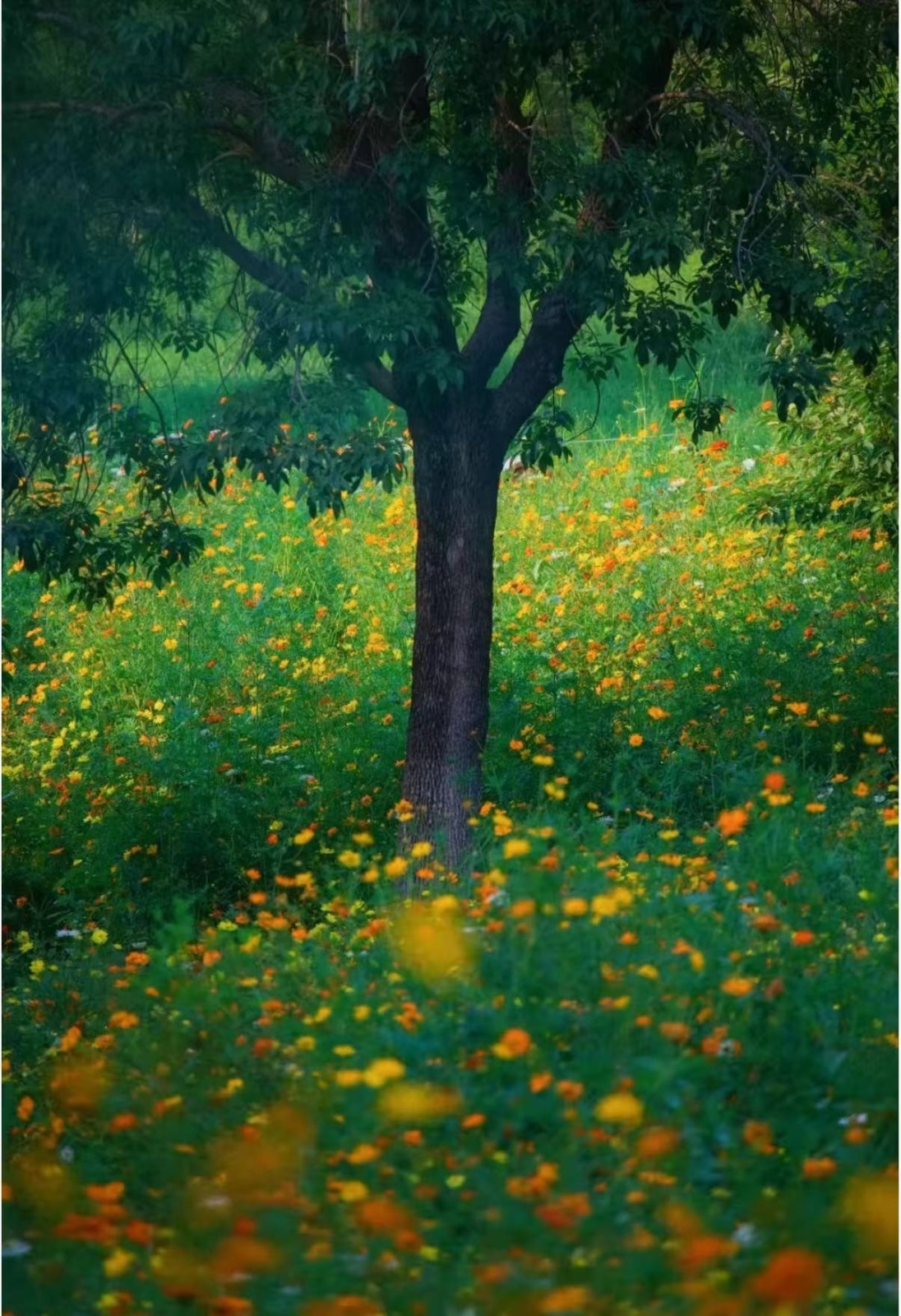 花田中央还伫立着一棵大树