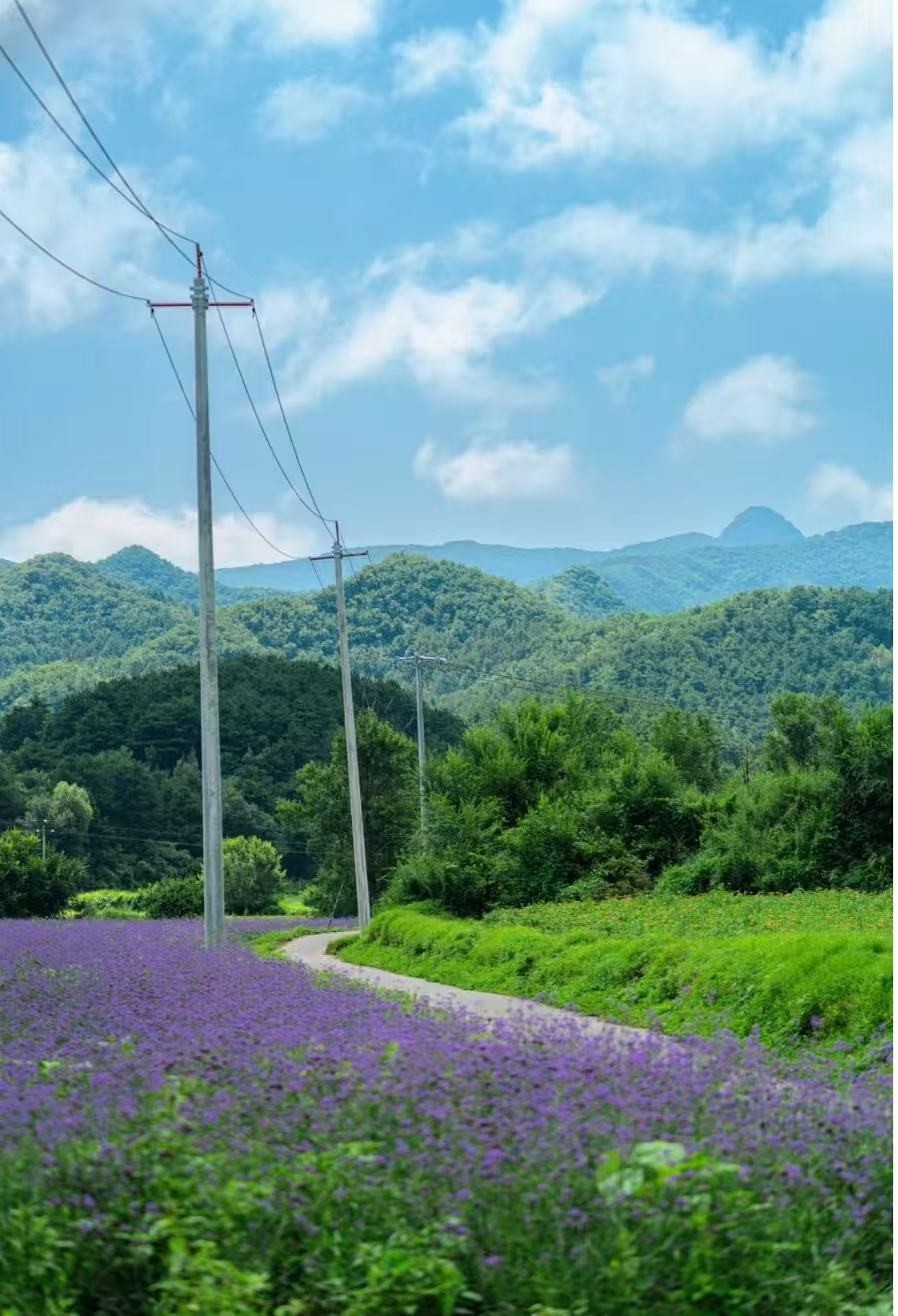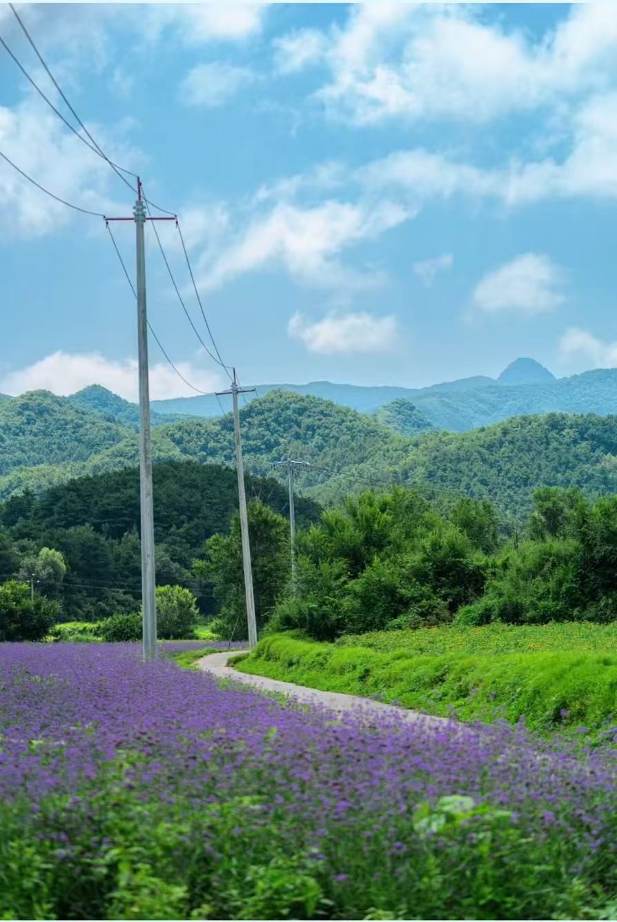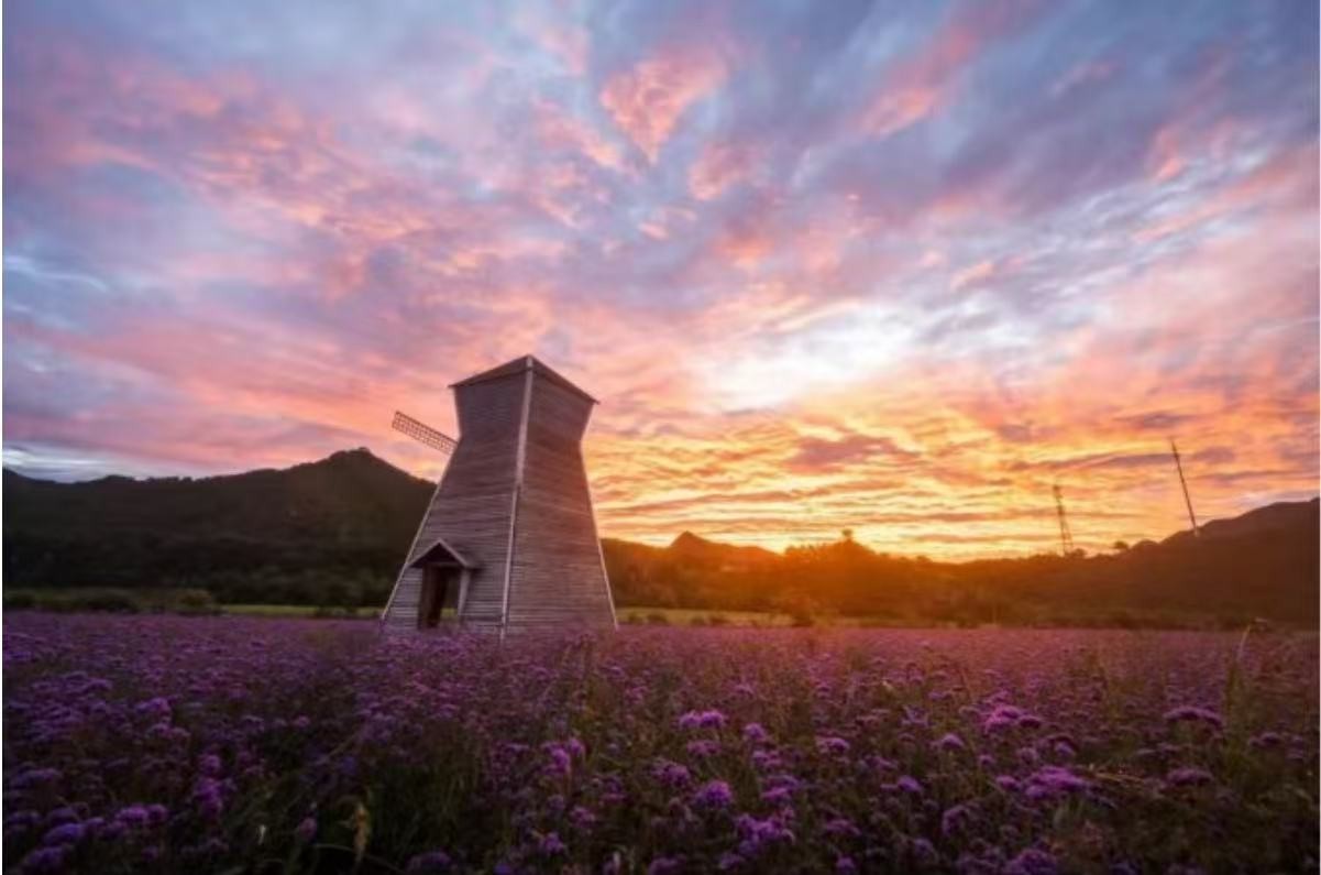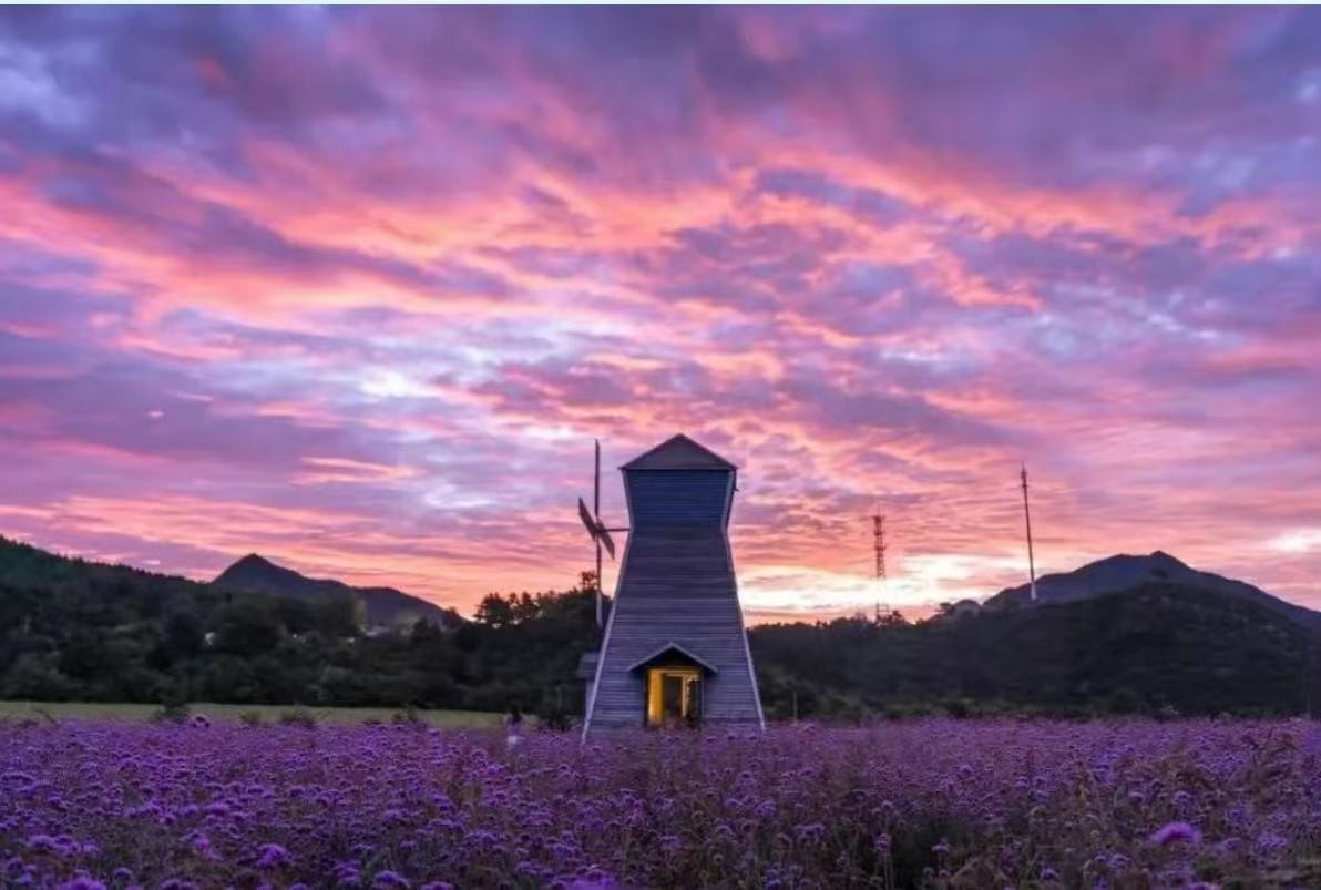 搭配紫色马鞭草花海