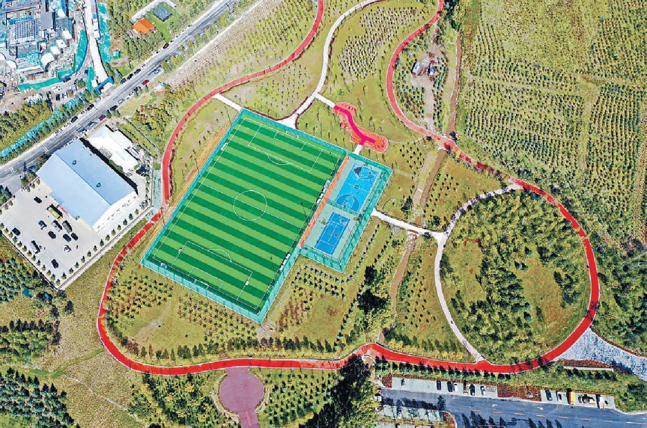 活力运动区占地约130.68亩,建设标准足球场、篮球场、网球场,以及林间自行车运动区、游客服务中心、体育广场、公益性大众健身区、夏季拓展场地等设施。同时,对公园进行了绿化,在树种选择方面,为了体现地域性特征,在尊重太子城体育公园现状风貌的基础上,按照绿化和彩化相结合的思路,遵循适地适树、因地制宜的原则,主要种植了樟子松、云杉、五角枫、白桦、蒙古栎,以及春季观花的山杏、山桃、八棱海棠等11个乔木树种共3792株,高度从2米到14米不等,形成错落有致的优美自然生态景观。