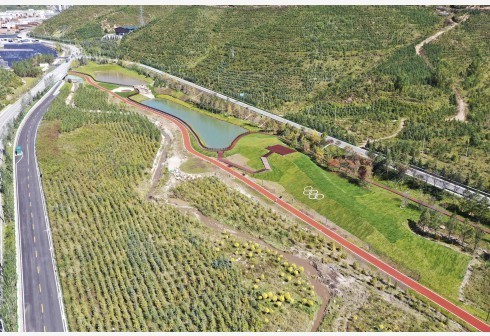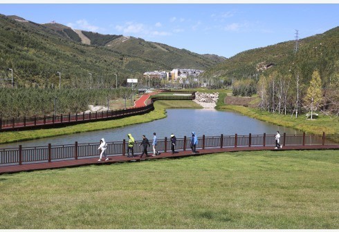 公园在整体规划设计上,充分利用自然地形以及周边配套设施,由北向南设置景观湖区、活力运动区和停车区,设置一条长两公里、宽4米、四季可用的环形健跑道路,连接三个功能区,定位打造集体育、健身、休闲于一体的全季山地体育运动公园,为冬奥会营造浓厚体育氛围,向全世界展示健康中国发展成果。