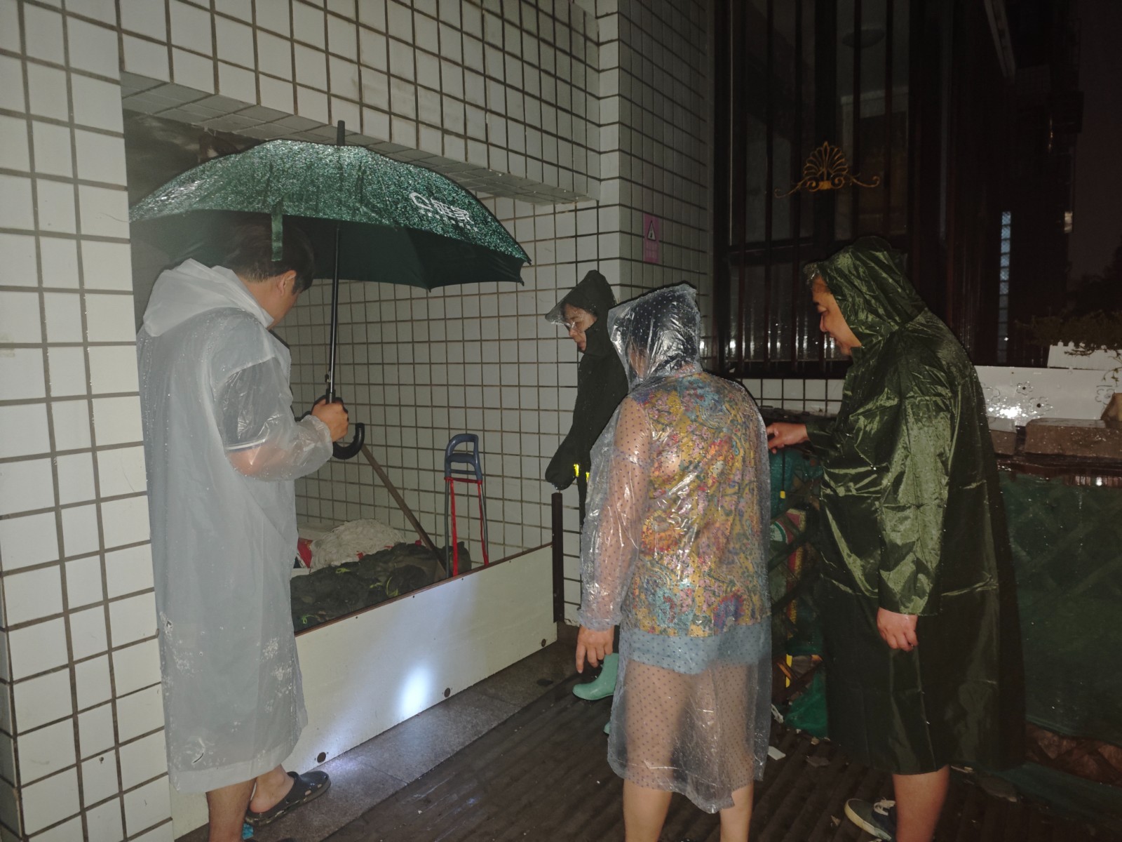 夜幕降临,当暴雨倾泻而下,街道全体工作人员早已严阵以待,在各自责任区彻夜坚守。