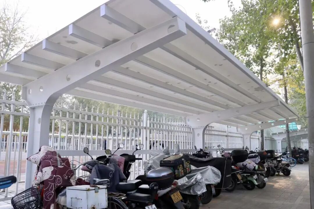 11月5日,记者走进焕然一新的香水苑公园,昔日冰冷的铁栅栏已不见踪影,取而代之的是低矮的围墙和开阔的出入口。无界公园改造不只是拆除围栏,更是通过系统性设计,让公园与城市功能深度融合。改造后的香水苑公园内新铺设的道路蜿蜒伸展,将休憩广场、自行车停放区串联起来。特别是公园东侧紧邻919路公交总站,乘客流量和停放的非机动车数量大,人行道上还有几棵无法移植的树木。为此,在公园改造过程中特意在该区域新建了5个停车棚,增加3个出入口,将原本为直线的栅栏,改为向公园“凹”进来的形状,在不伤害树木的前提下扩大了公交站候车空间、增设了休憩座位。