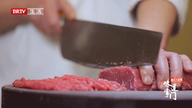 焦炒牛肉是从清真老菜焦溜肉片演变而来的,这道菜特别考验厨师的刀功。牛肉必须切成2毫米左右的薄片,太薄了炸制过后会变硬,太厚又会少一分脆爽。切完之后的肉必须得用凉水泡,每天换两三遍水,一共泡两到三天,目的是去除牛肉中的血水。