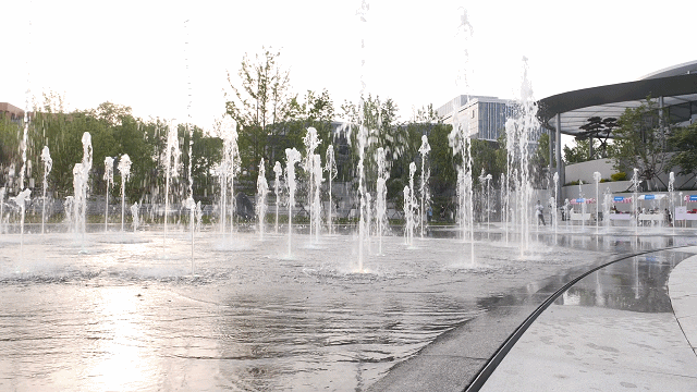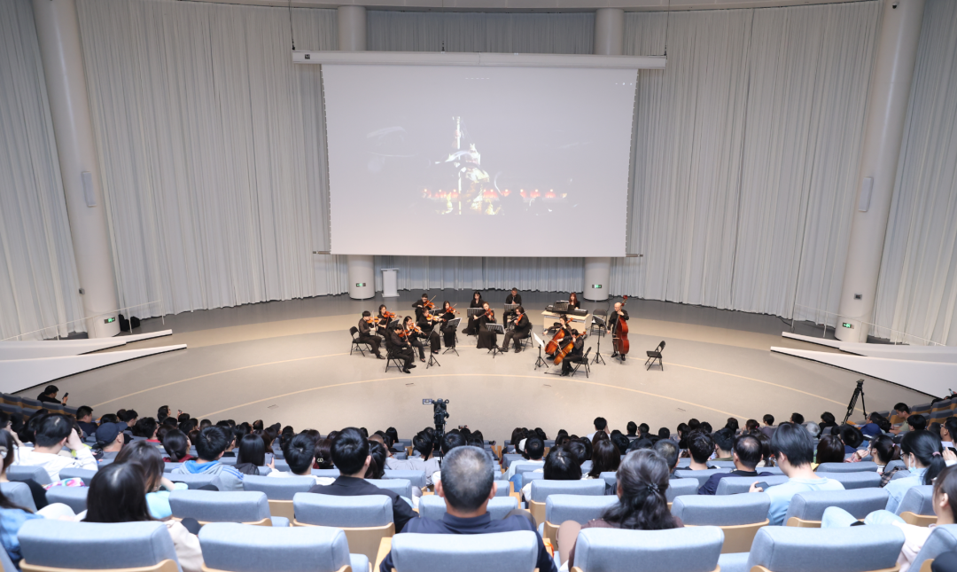 报告厅内,伴随着悠扬的音乐,观众们仿佛置身于经典电影之中。报告厅外,下沉广场上的喷泉随着音乐声“随波起舞”。