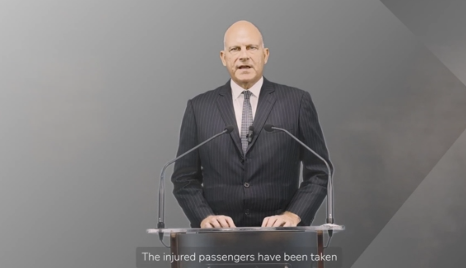 视频中,威尔逊表示,“受伤乘客已被送往附近医院接受救治。”其中“乘客”一词威尔逊使用的是复数表达形式。